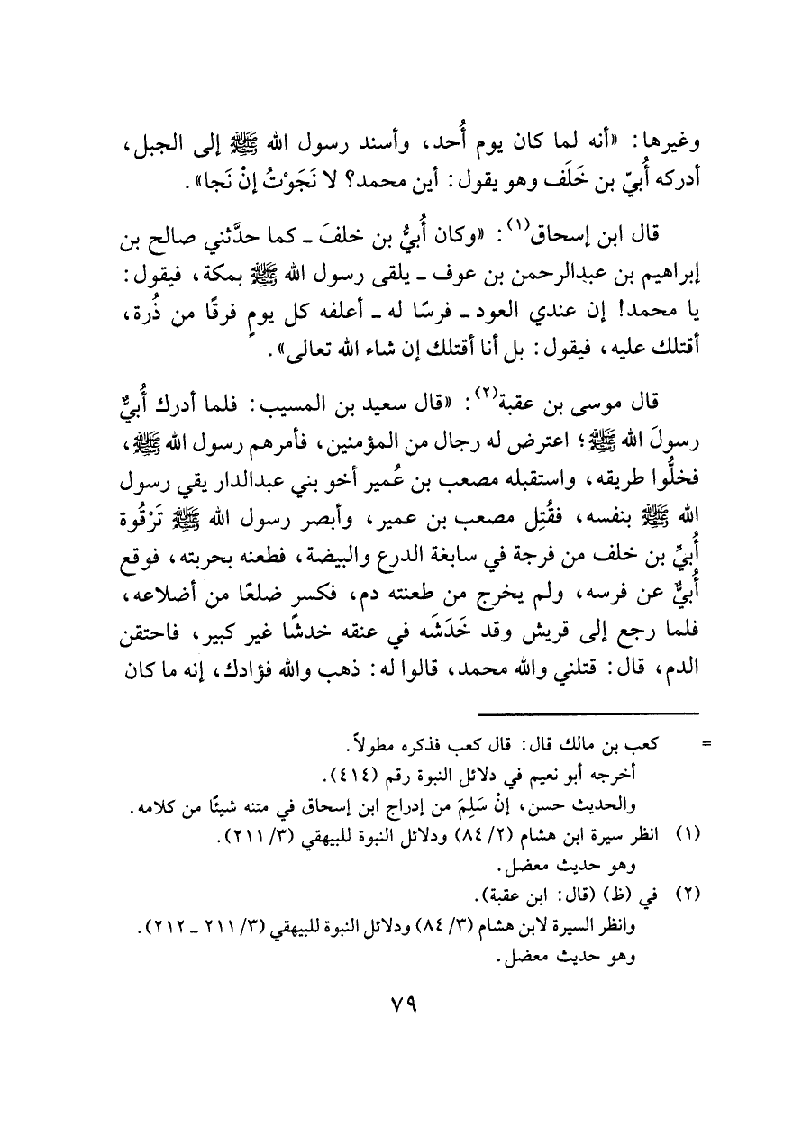 وانظر السيرة لابن هشام (٣/ ٨٤) ودلائل النبوة للبيهقي (٣/ ٢١١ - ٢١٢).