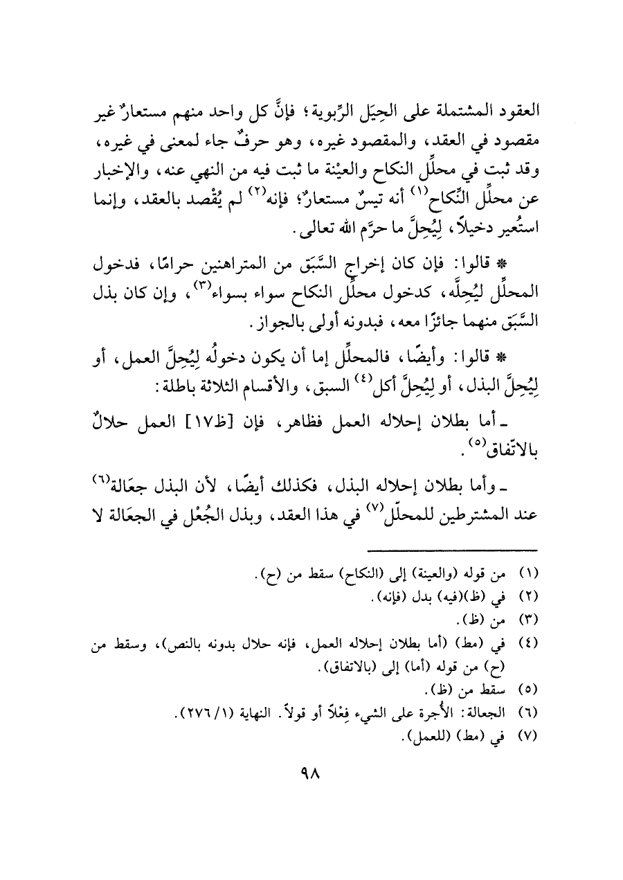 (¬٤) في (مط) (أما بطلان إحلاله العمل، فإنه حلال بدونه بالنص)، وسقط من (ح) من قوله (أما) إلى (بالاتفاق).