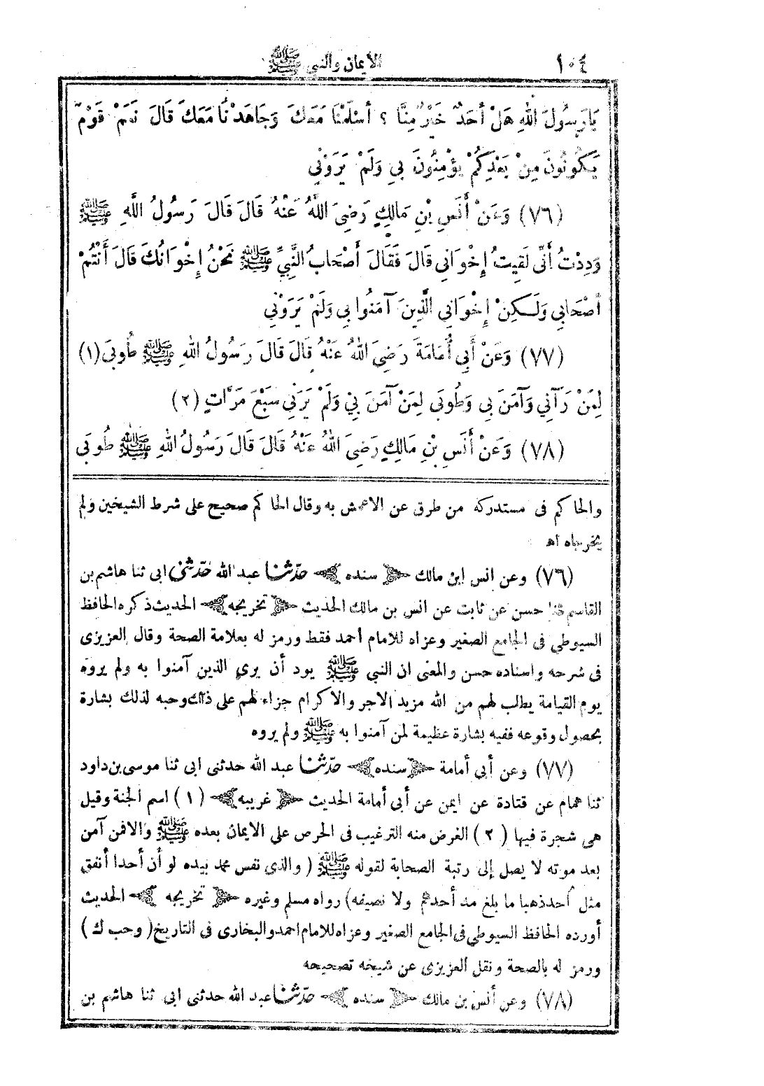 (76) وعن أنس بن مالك رضي الله عنه قال قال رسول الله صلى الله عليه وسلم وددت أني لقيت إخواني قال فقال أصحاب النبي صلى الله عليه وسلم نحن إخوانك قال أنتم أصحابي ولكن إخواني الذين آمنوا بي ولم يروني