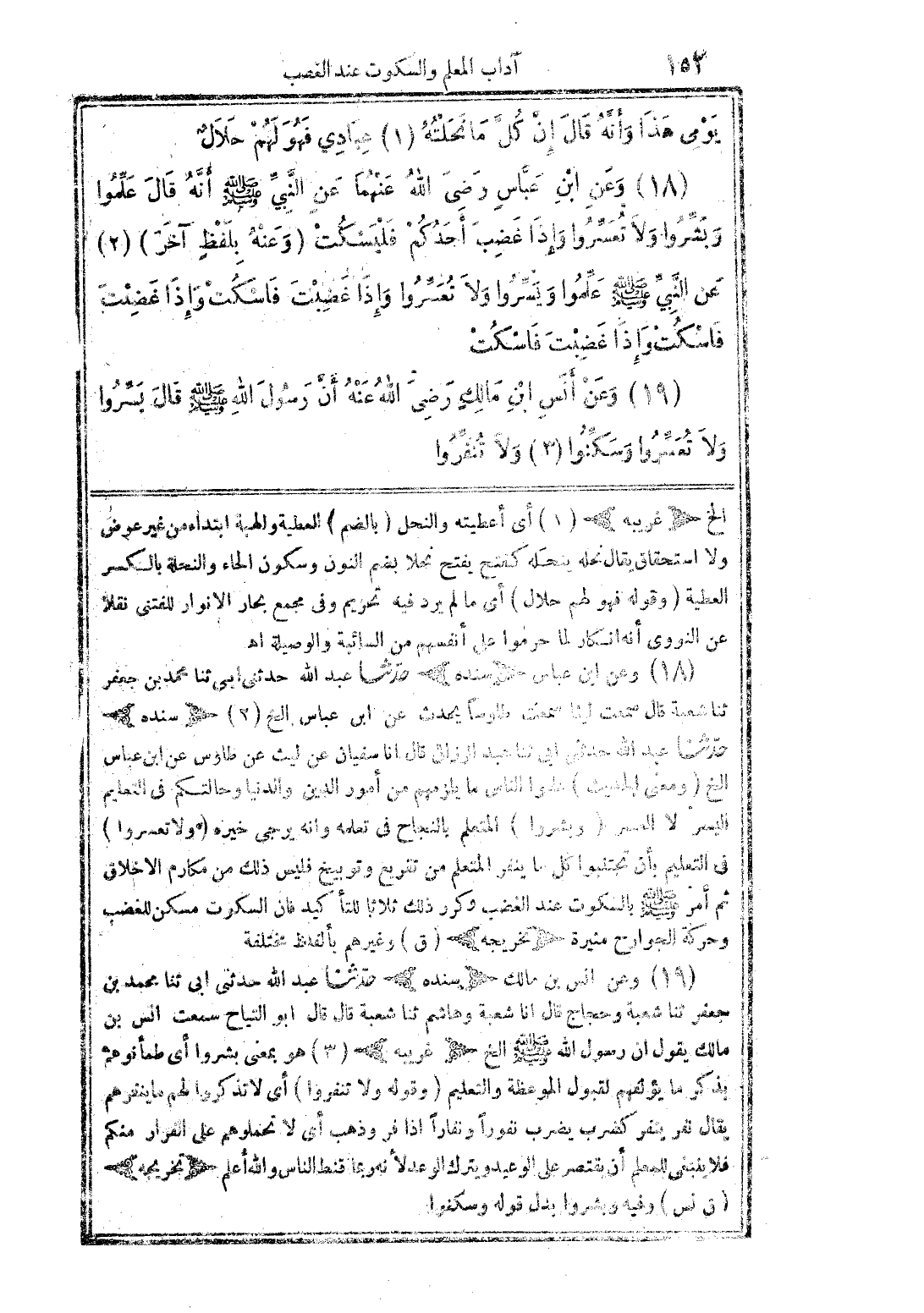 (18) وعن ابن عباس رضى الله عنهما عن النبى صلى الله عليه وسلم أنه قال علموا وبشروا ولا تعسروا وإذا غضب أحدكم فليسكت (وعنه بلفظ اخر) (2) عن النبي صلى الله عليه وسلم علموا ويسروا ولا تعسروا واذا غضبت فاسكت واذا غضبت فاسكت واذا غضبت فاسكت