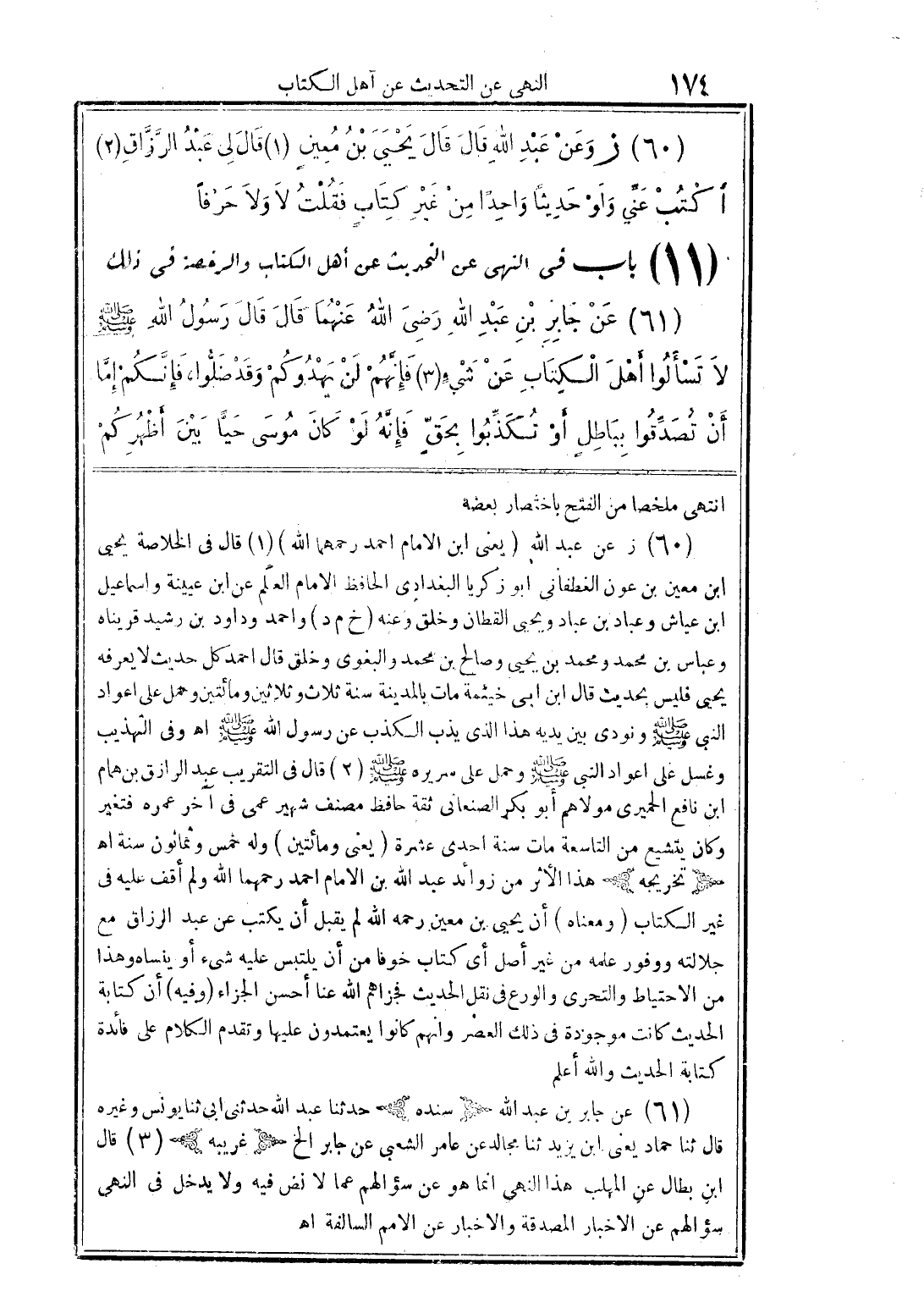 (11) باب فى النهى عن التحديث عن اهل الكتاب والرخصة فى ذلك