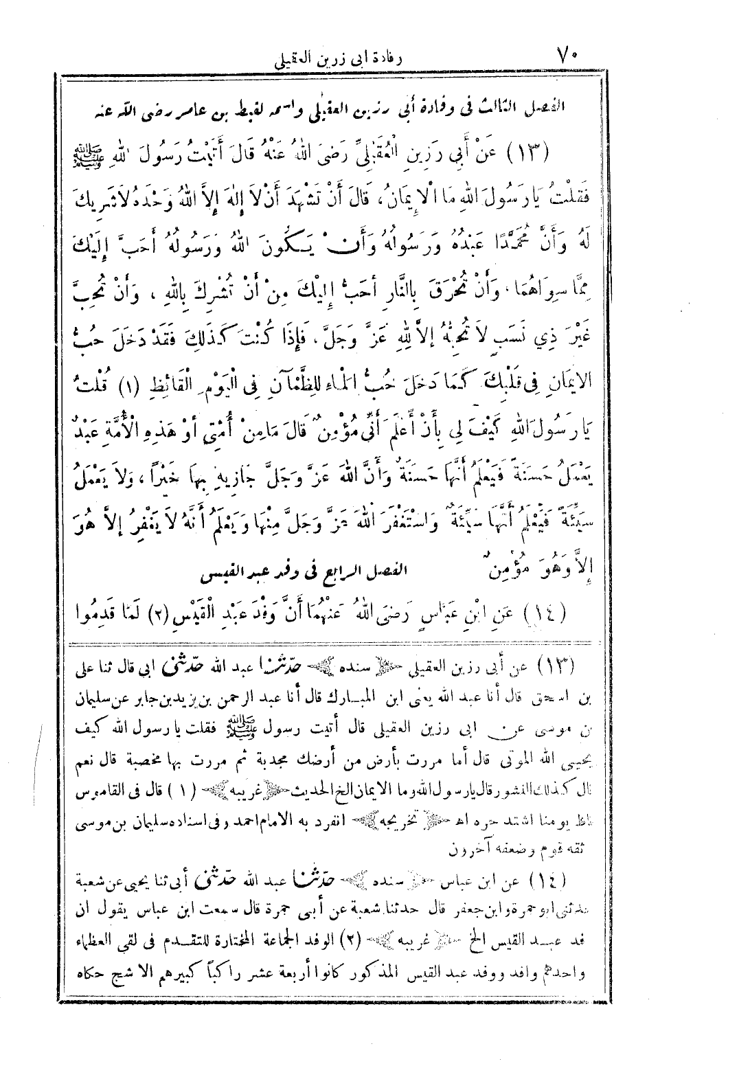 الفصل الثالث في وفادة أبي رزين العقيلي واسمه لقيط بن عامر رضى الله عنه