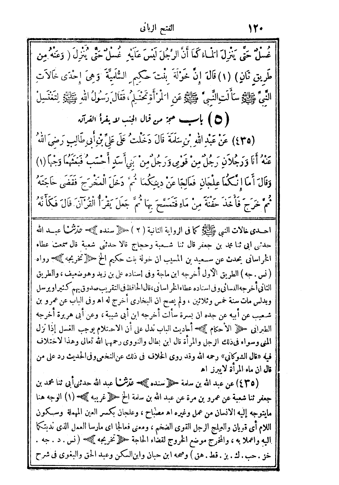 (5) باب حجة من قال الجنب لا يقرأ القرآن
