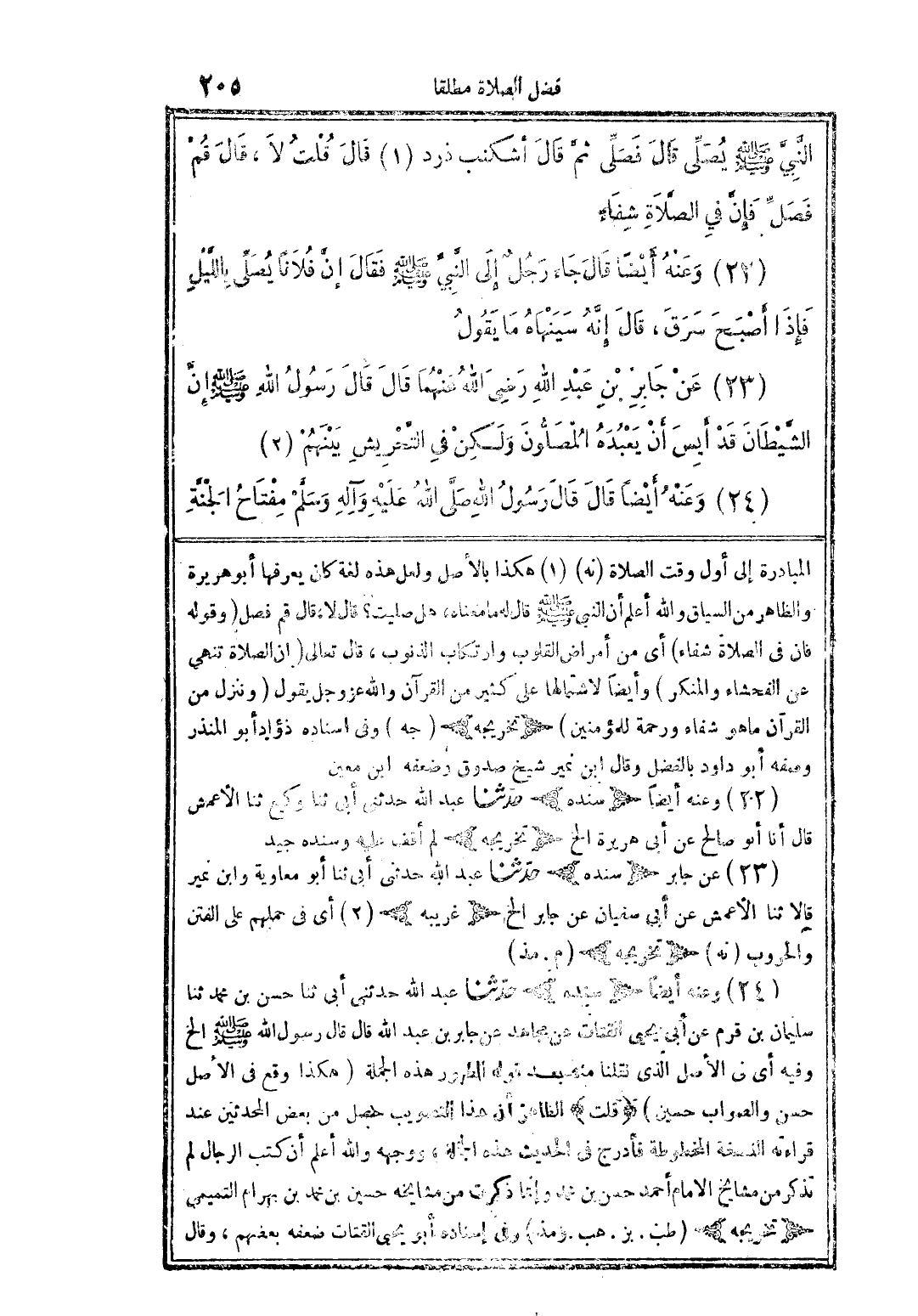 (22) وعنه أيضًا قال جاء رجل إلى النَّبيِّ صلى الله عليه وسلم فقال إنَّ فلانًا يصلِّى باللَّيلٍ فإذا أصبح سرق، قال إنَّه سينهاه ما يقول