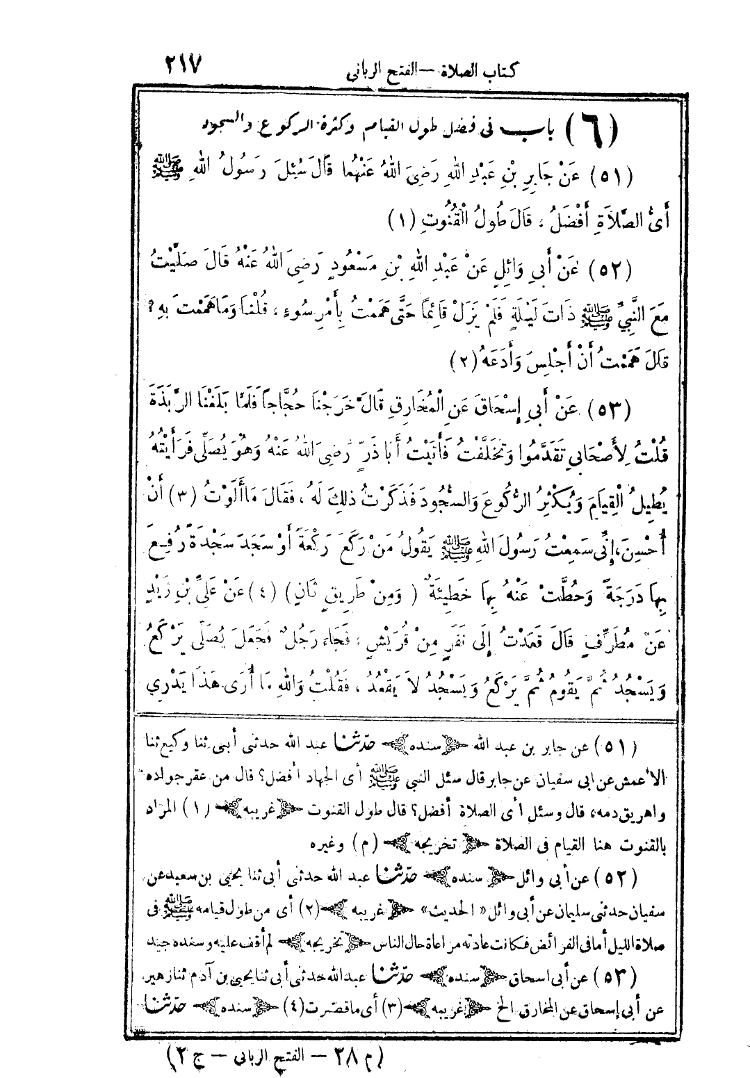 (51) عن جابر بن عبد الله رضى الله عنهما قال سئل رسول الله صلى الله عليه وسلم أى الصَّلاة أفضل، قال طول القنوت