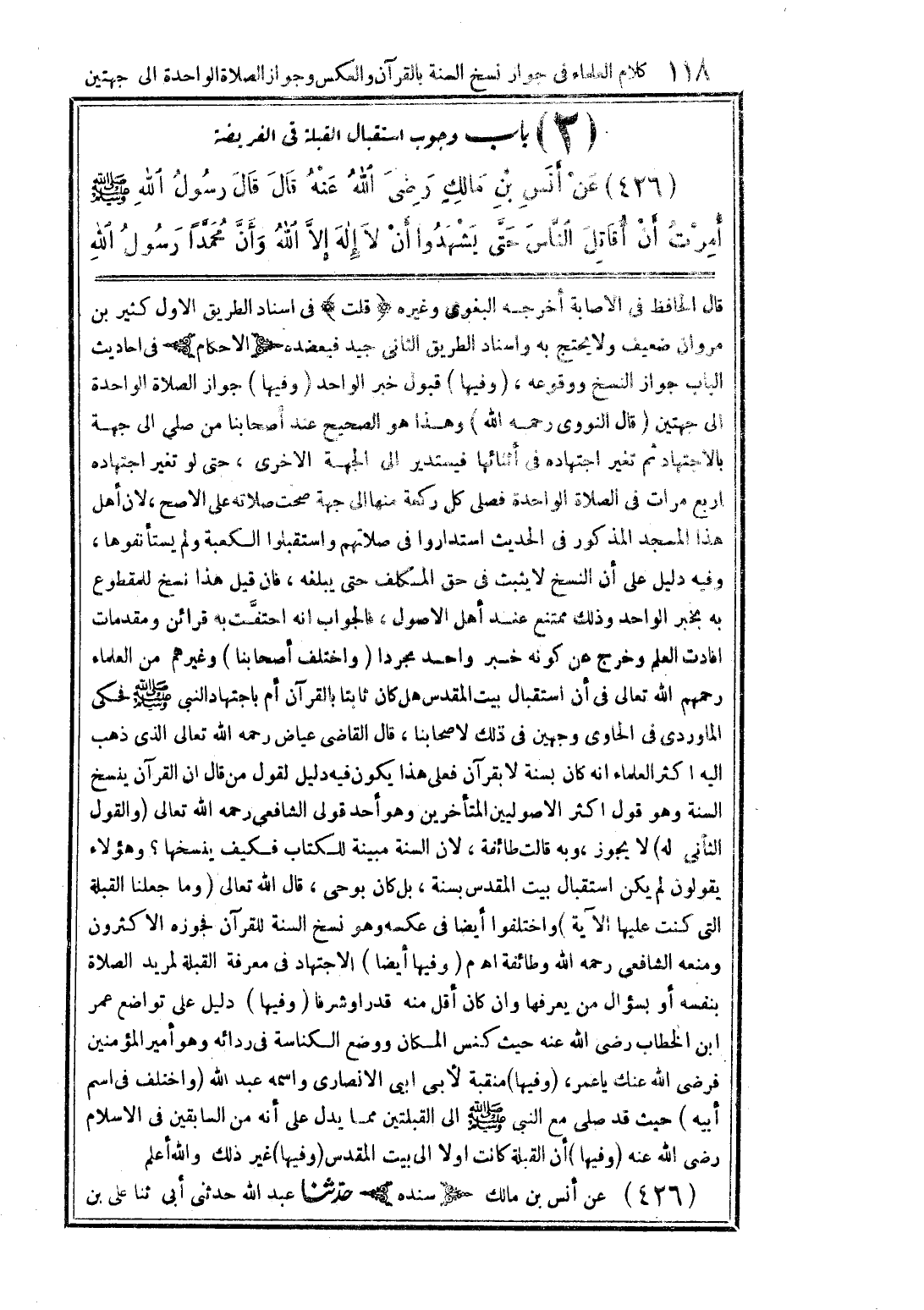 -[كلام العلماء فى جواز نسخ السنة بالقرآن والعكس وجواز الصلاة الواحدة الى جهتين]-