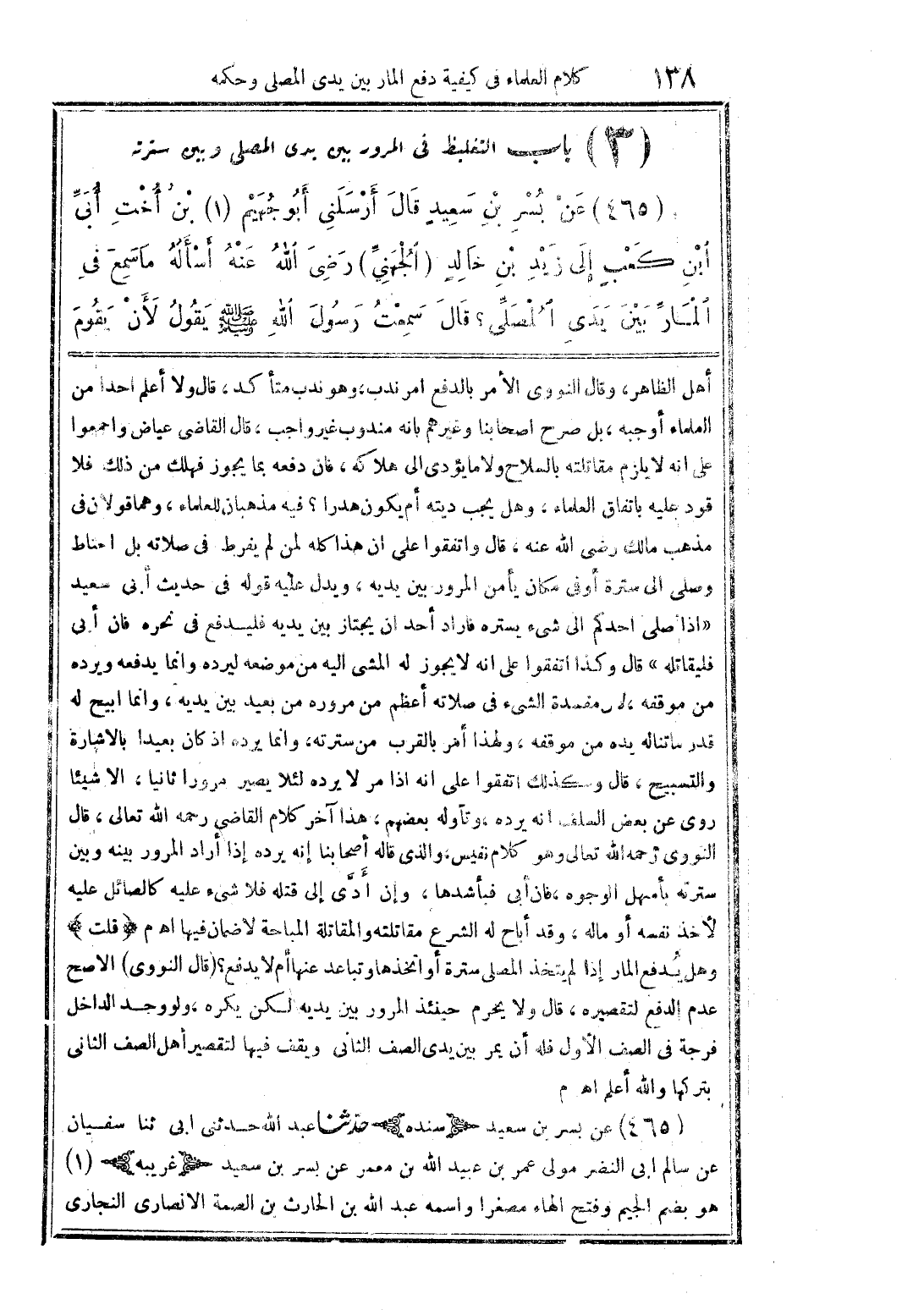 (3) باب التغليظ فى المرور بين يدى المصلى وبين سترته