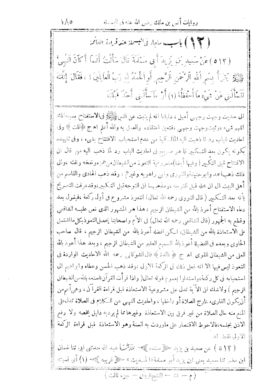 (512) عن سعيد بن يزيد أبى مسلمة قال سألت؟؟؟ أكان النَّبيّ صلى الله عليه وسلم يقرأ بسم الله الرَّحمن الرَّحيم أو الحمد لله ربِّ العالمين؟، فقال إنَّك لتسألني عن شيءٍ ما أحفظه (1) أو ما سألني أحد قبلك