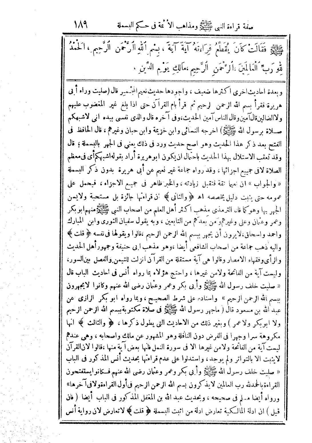 -[صفة قراءة النبى صلى الله عليه وسلم ومذاهب الأئمة فى حكم البسملة]-