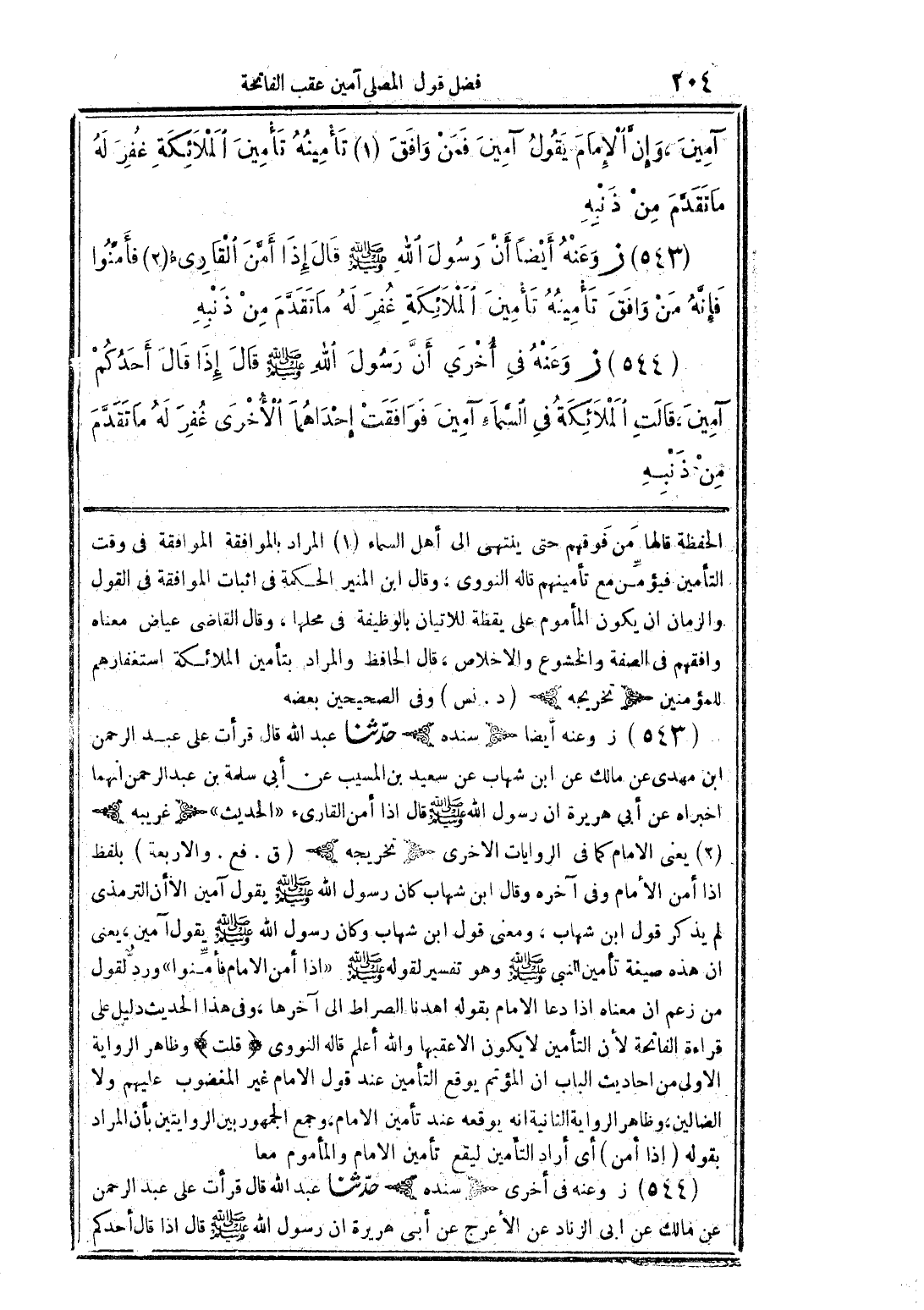 (543) ز وعنه أيضًا أن رسول الله صلى الله عليه وسلم قال إذا أمَّن القارئ (2) فأمِّنوا فإنَّه من وافق تأمينه تأمين الملائكة غفر له ما تقدَّم من ذنبه