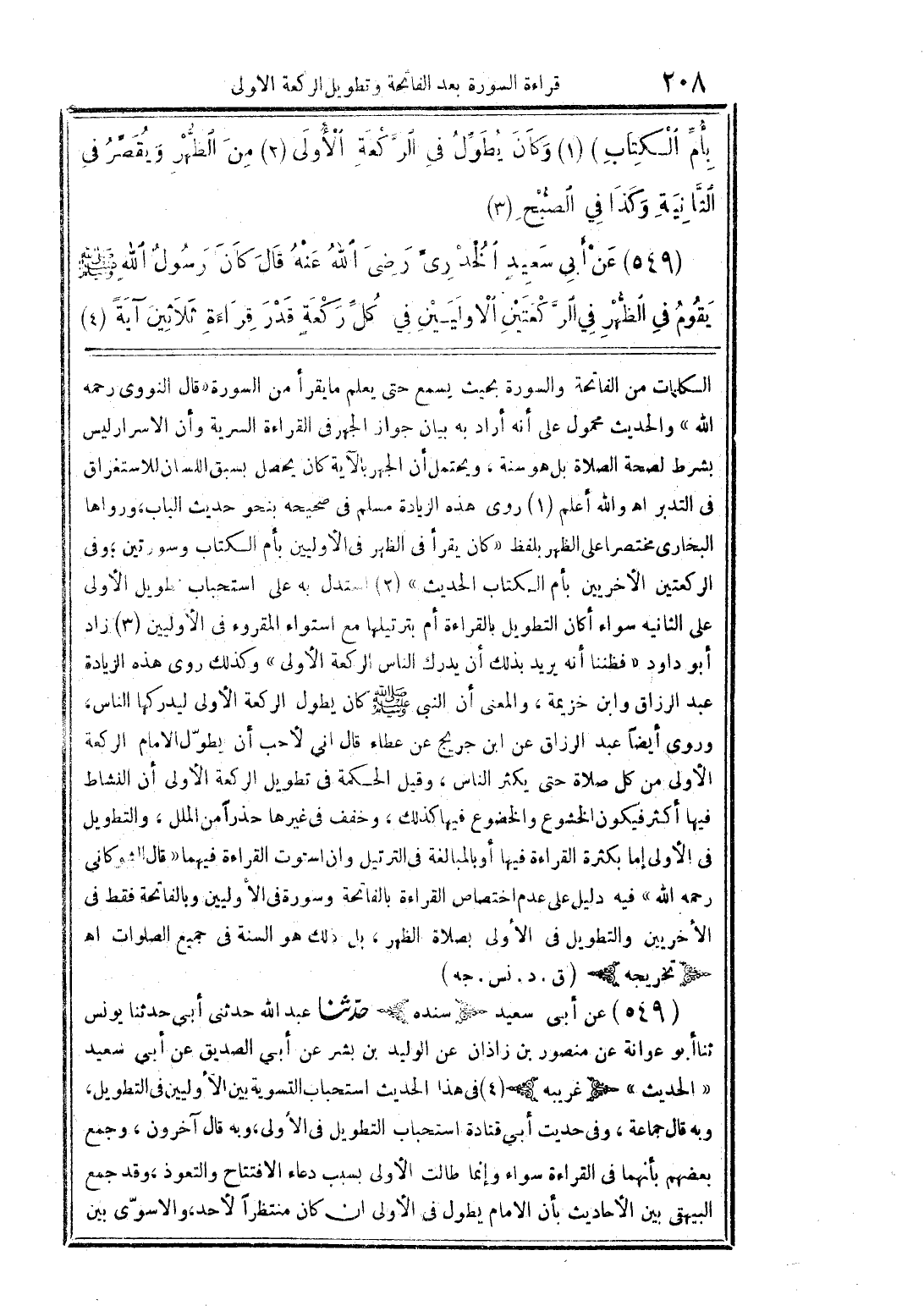 (549) عن أبى سعيد الخدرىِّ رضى الله عنه قال كان رسول الله صلى الله عليه وسلم يقوم فى الظُّهر في الرَّكعتين الاوليين فى كلِّ ركعة قدر قراءة ثلاثين آيةً (4)