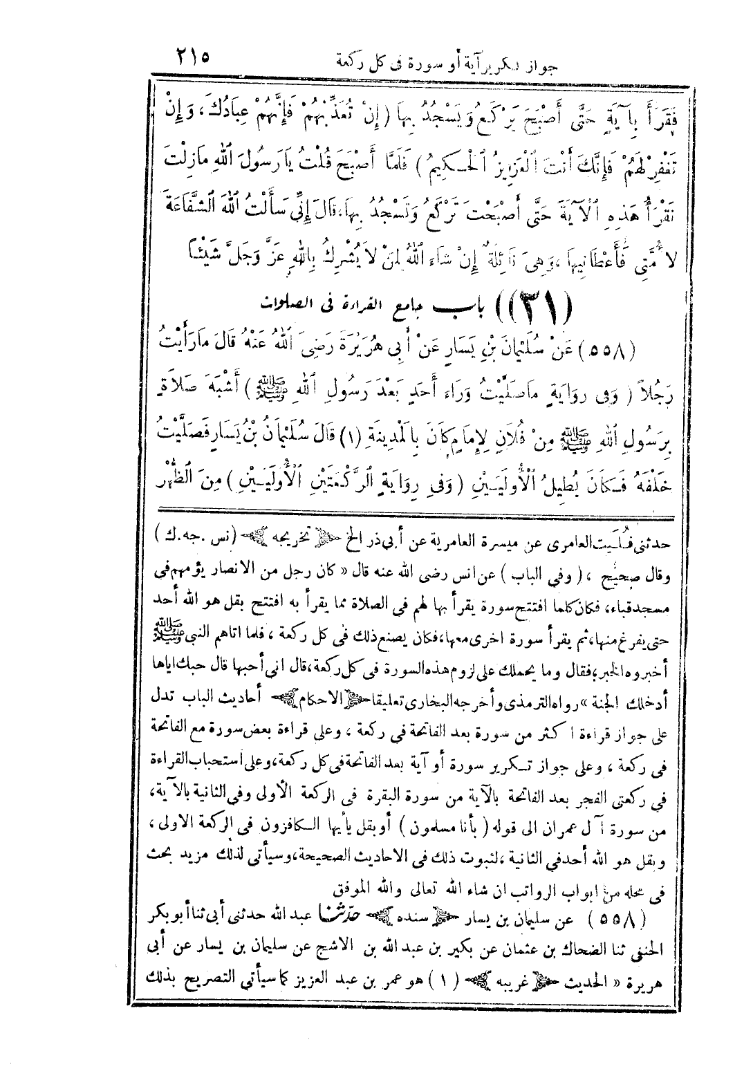 -[جواز تكرير آية أو سورة فى كل ركعة]-