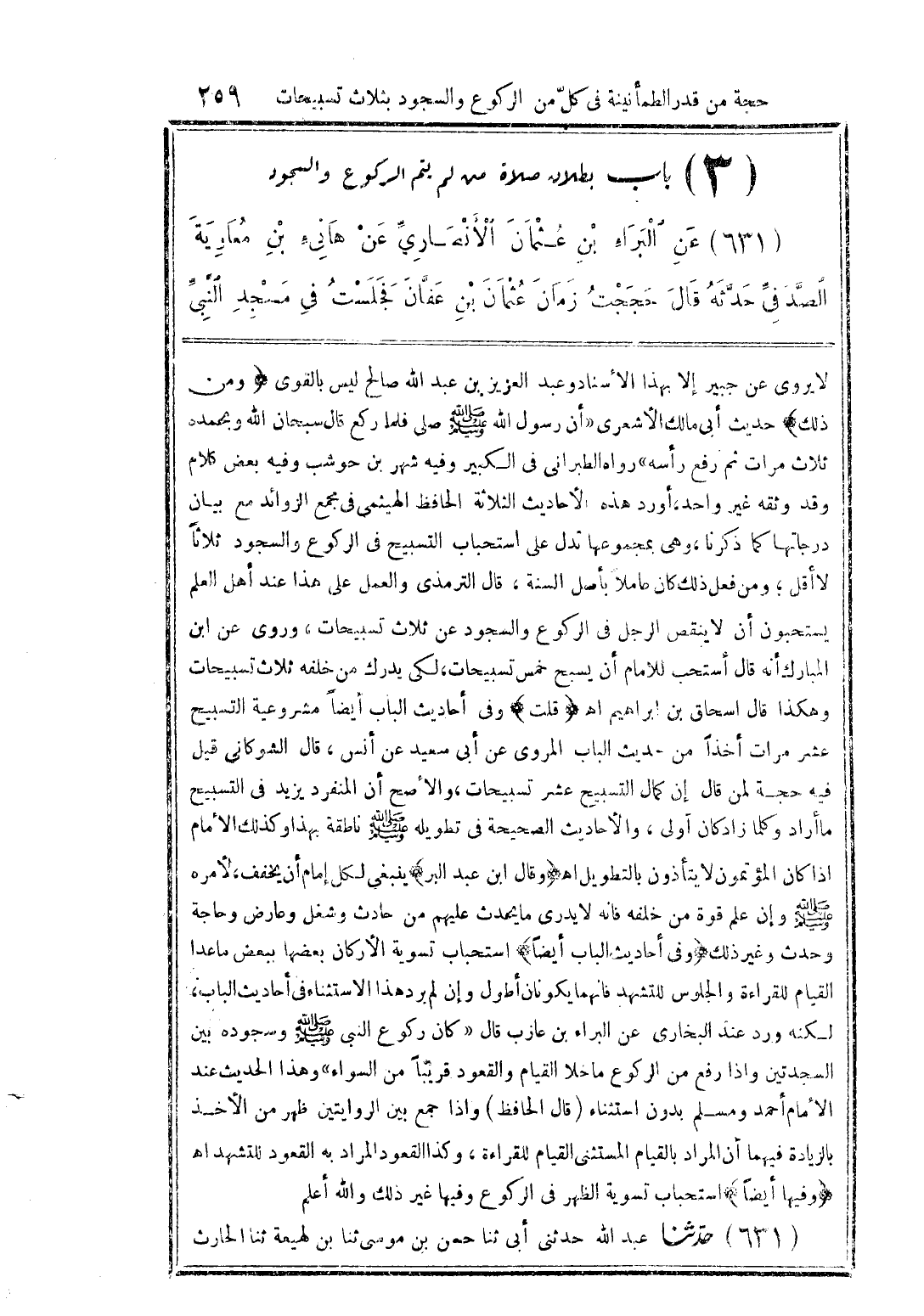 -[حجة من قدر الطمأنينة فى كلّ من الركوع والسجود بثلاث تسبيحات]-