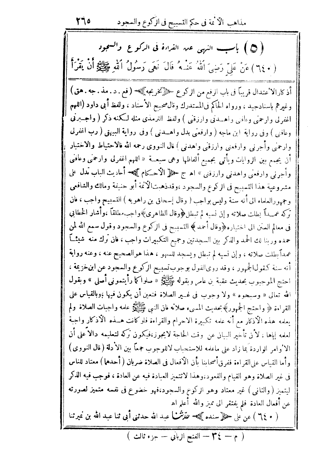 (5) باب النهي عن القراءة فى الركوع والسجود