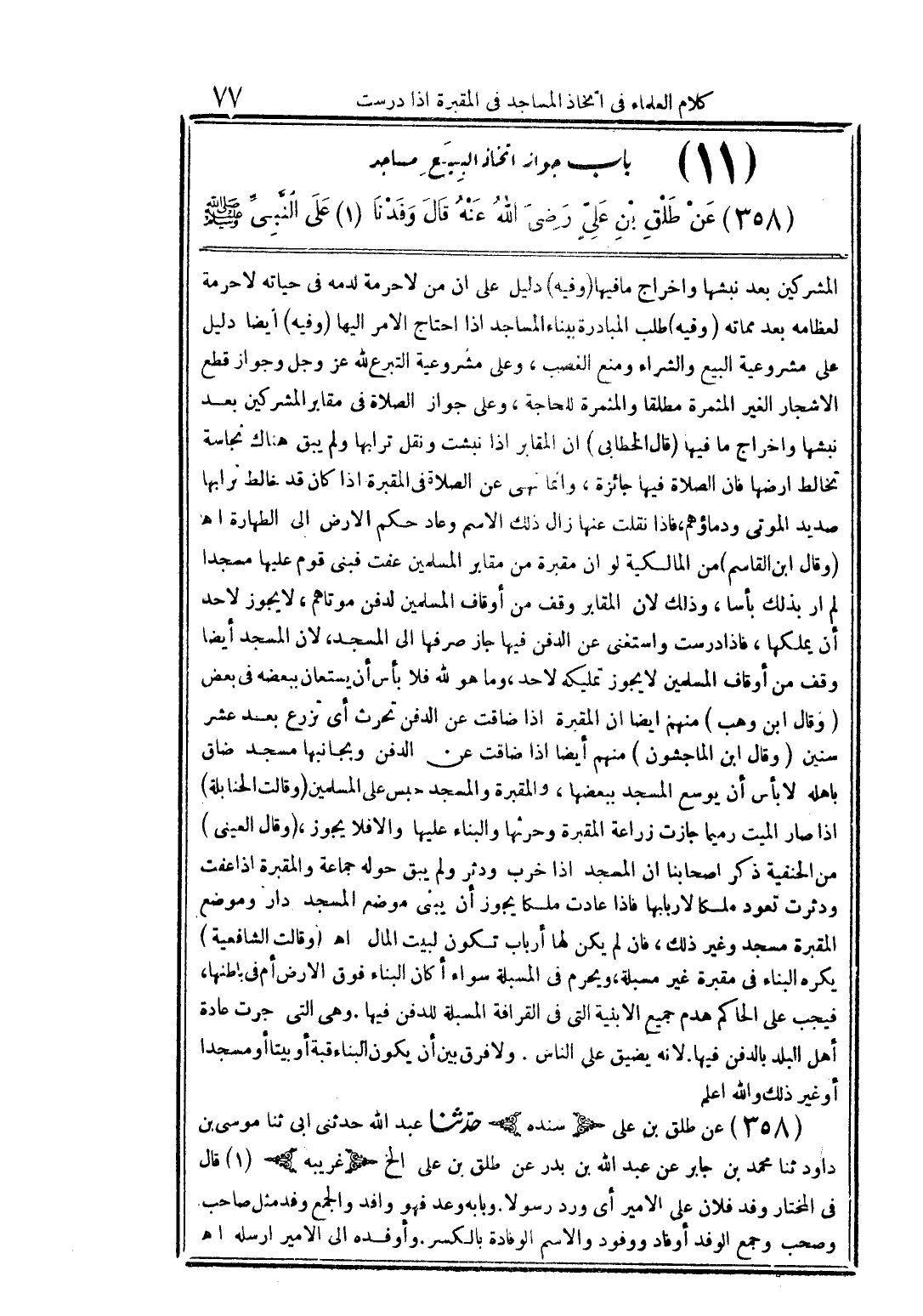 -[كلام العلماء في اتخاذ المساجد فى المقبرة اذا درست]-