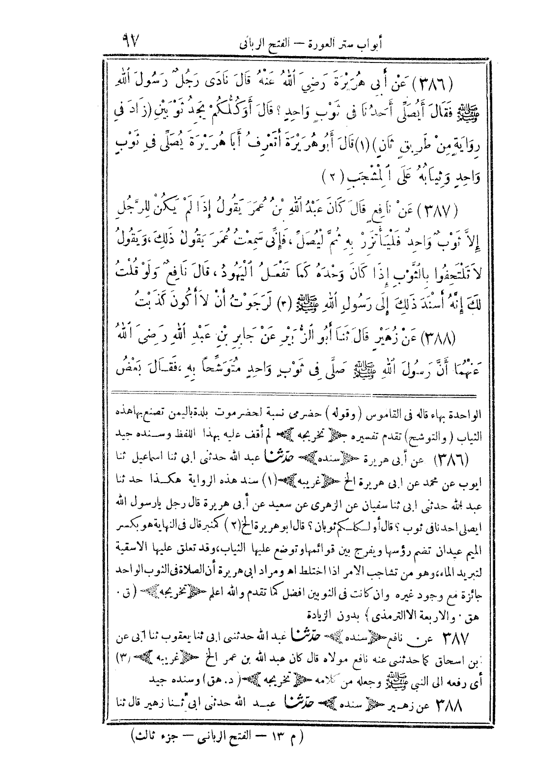 كتاب الفتح الرباني لترتيب مسند الإمام أحمد بن حنبل الشيباني (اسم الجزء: 3)