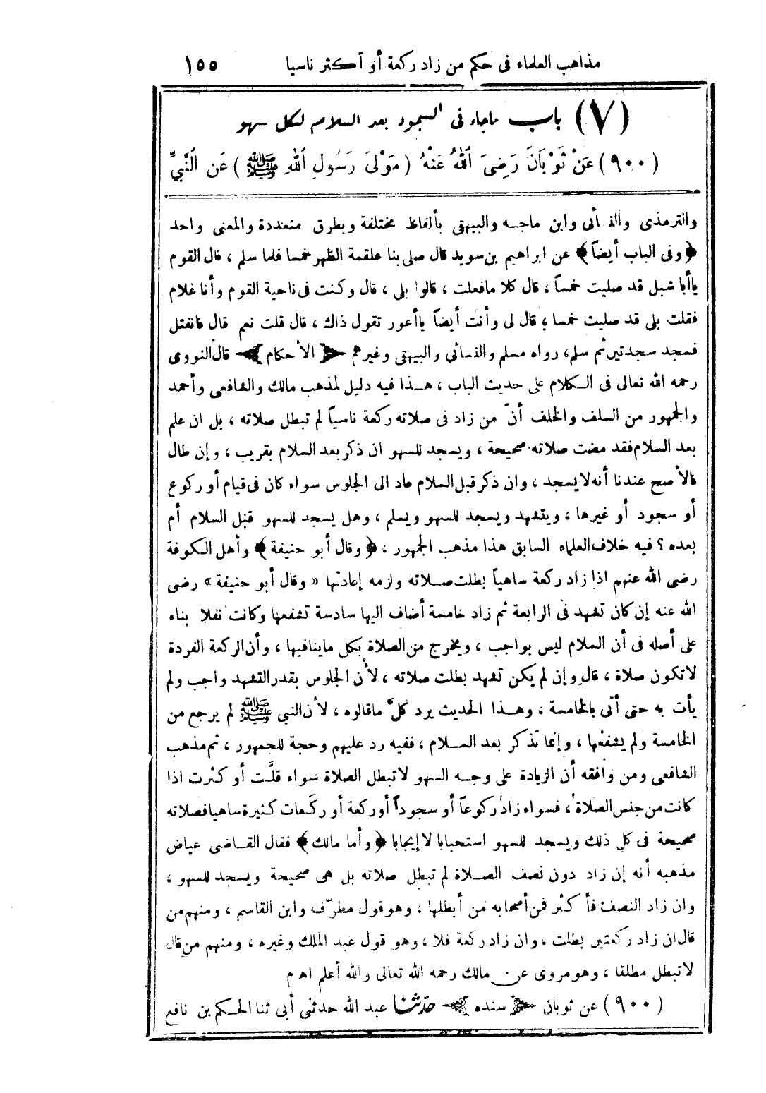 7 - باب ما جاء في السجود بعد السلام لكل سهو 900 - عن ثوبان رضي الله عنه (مولى رسول الله صلى الله عليه وسلم) عن النبي