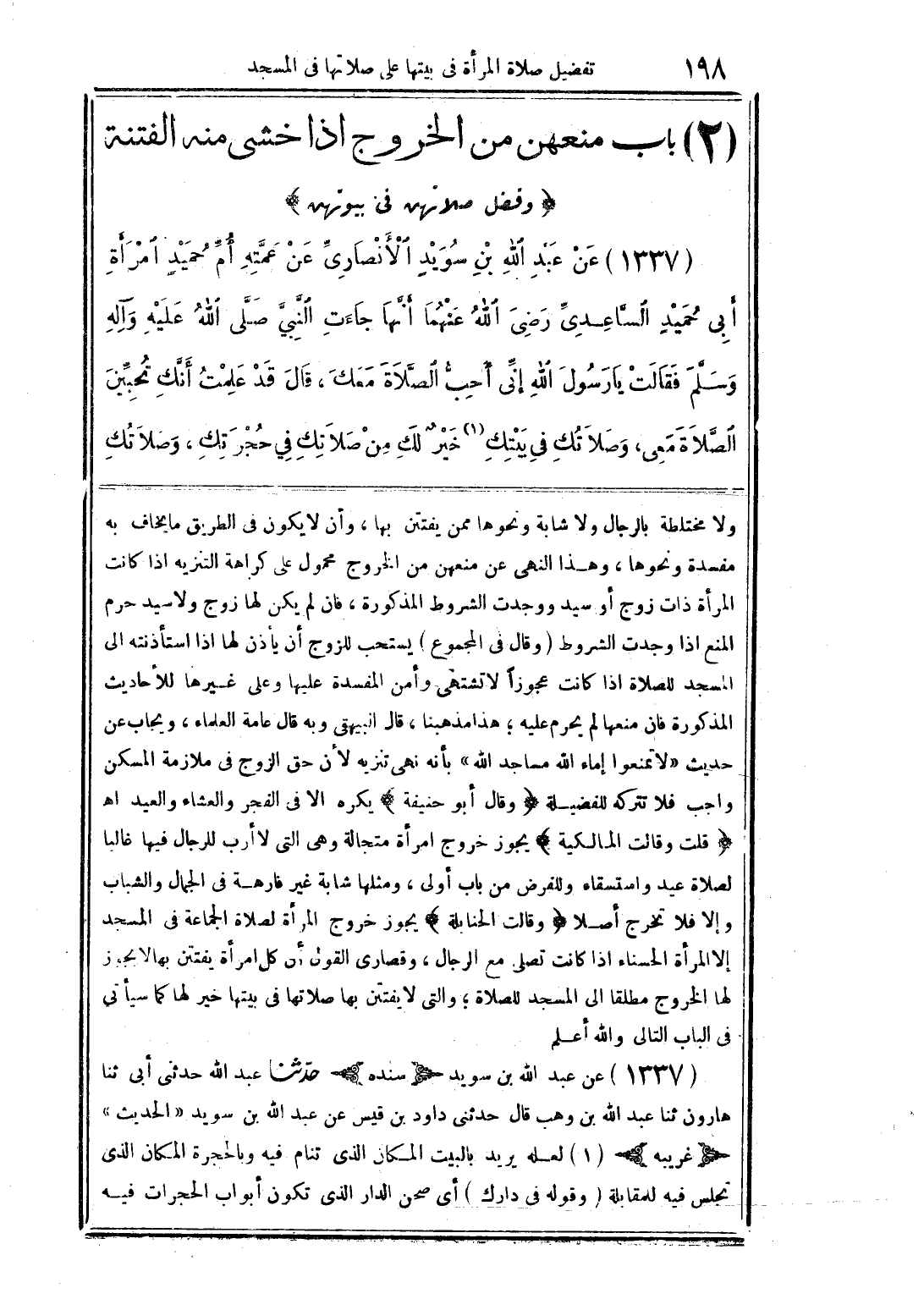 (2) باب منعهن من الخروج اذا خشى منه الفتنة