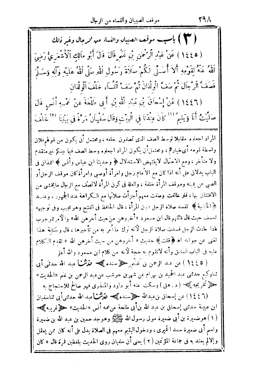 (3) باب موقف الصبيان والنساء من الرجال وغير ذلك
