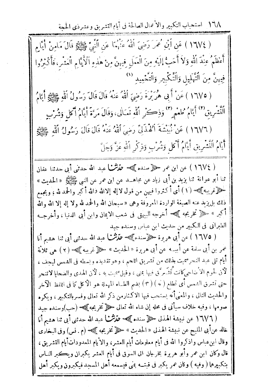 (1675) عن أبى هريرة رضي الله عنه قال قال رسول الله (صلى الله عليه وسلم) أيَّام التَّشريق (2) أيَّام طعمٍ (3) وذكر الله تعالى، وقال مرَّة أيَّام أكلٍ وشربٍ