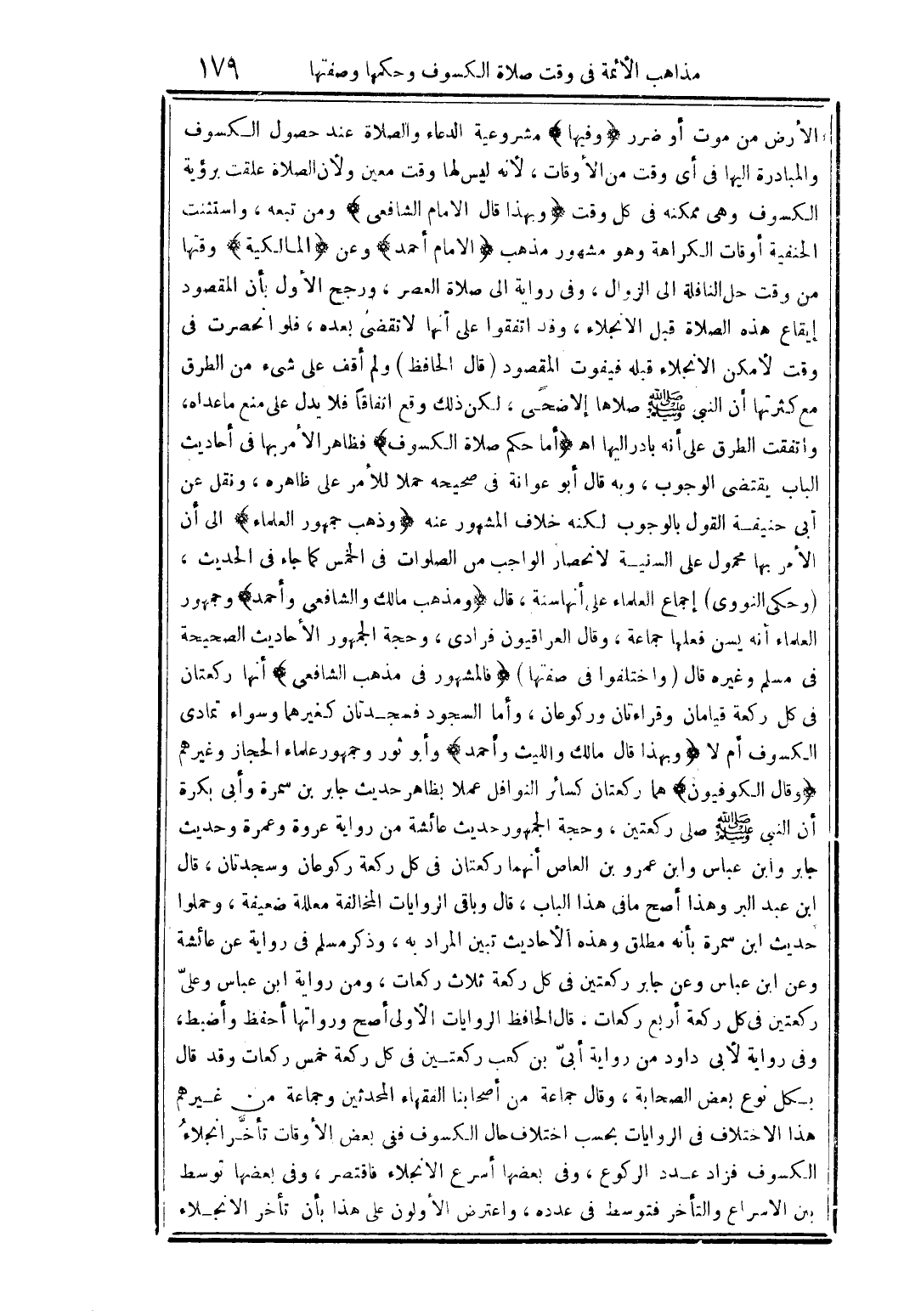 -[مذاهب الأئمة في وقت صلاة الكسوف وحكمها وصفتها]-