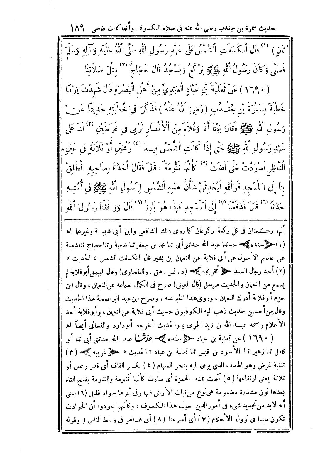 ثانٍ) (1) قال انكسفت الشَّمس على عهد رسول الله صلَّى الله عليه وعلى آله وصحبه وسلَّم فصلَّى وكان رسول الله (صلى الله عليه وسلم) يركع ويسجد قال حجَّاج (2) مثل صلاتنا