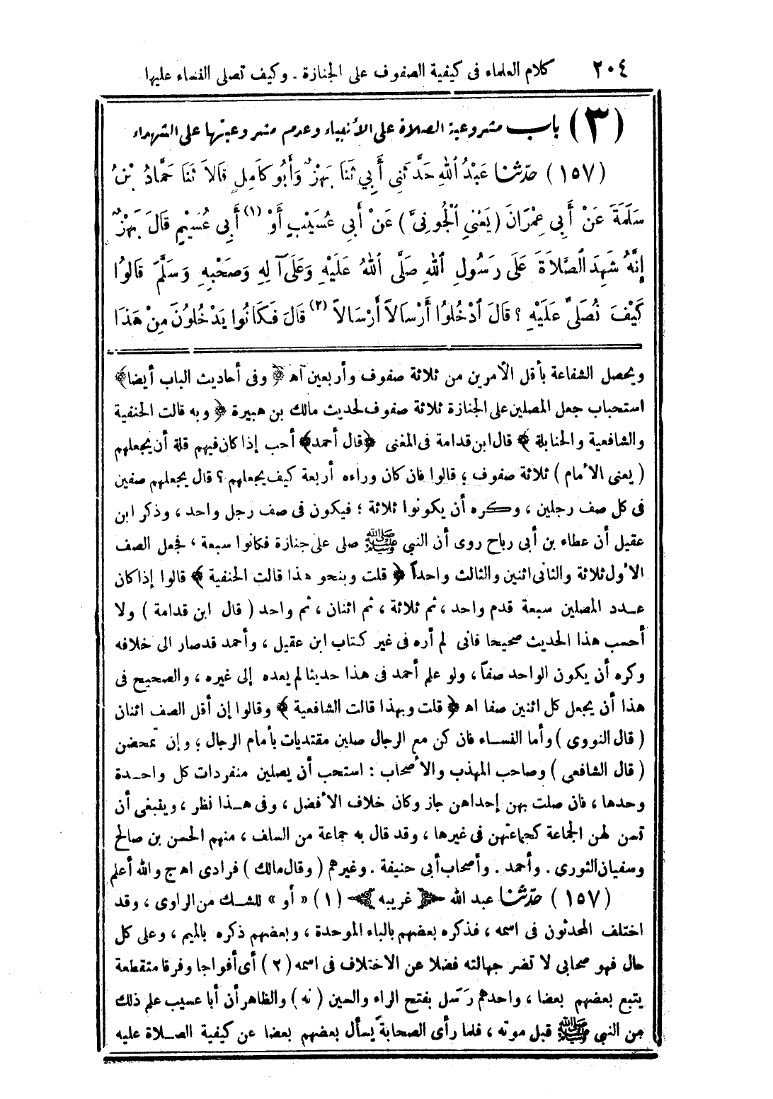 (3) باب مشروعية الصلاة على الأنبياء وعدم مشروعيتها على الشهداء