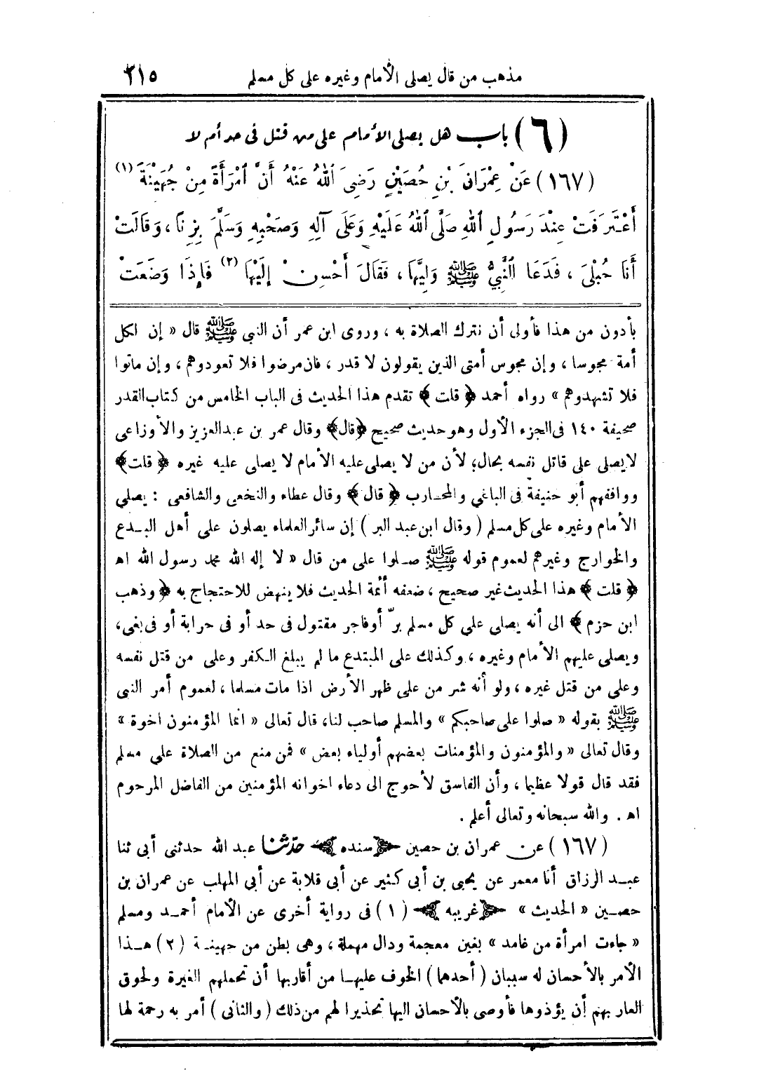 (167) عن عمران بن حصين رضي الله عنه أن أمرأة من جهينة اعترفت عند رسول الله صلَّى الله عليه وعلى آله وصحبه وسلَّم بزناً، وقالت أنا حبلى، فدعا النَّبيُّ صلى الله عليه وسلم وليها، فقال أحسن إليها فإذا وضعت