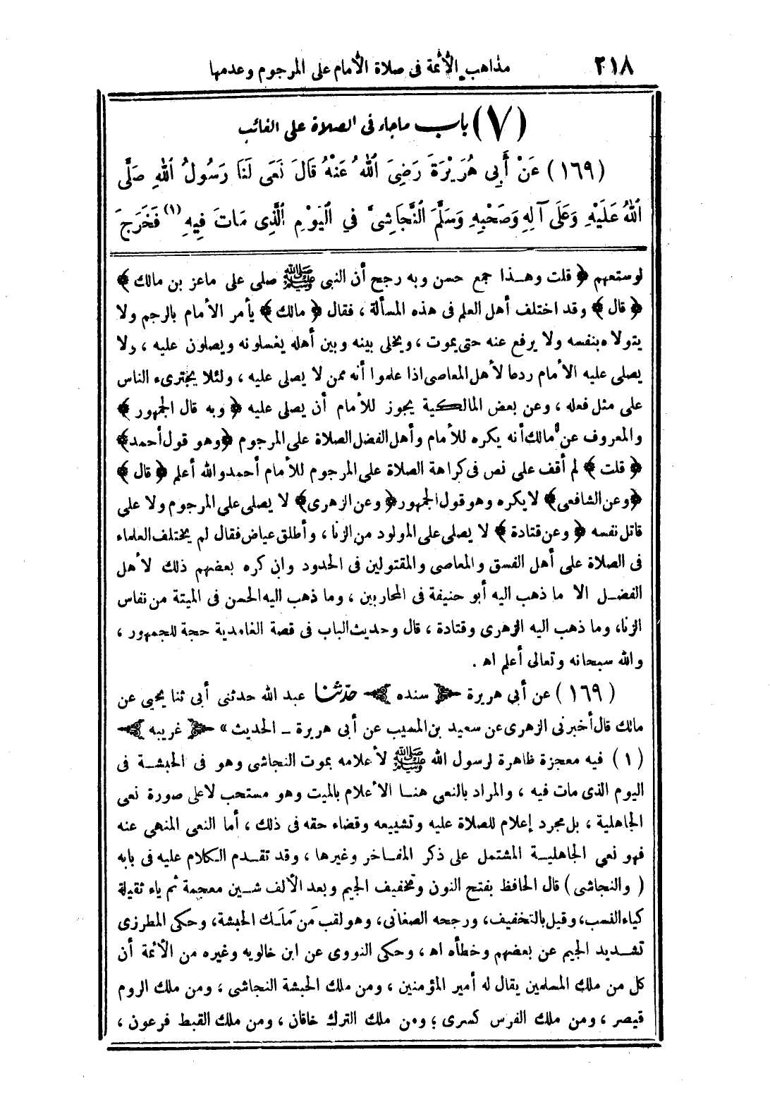 (169) عن أبي هريرة رضي الله عنه قال نعى لنا رسول الله صلَّى الله عليه وعلى آله وصحبه وسلَّم النَّجاشيَّ في اليوم الذَّي مات فيه فخرج
