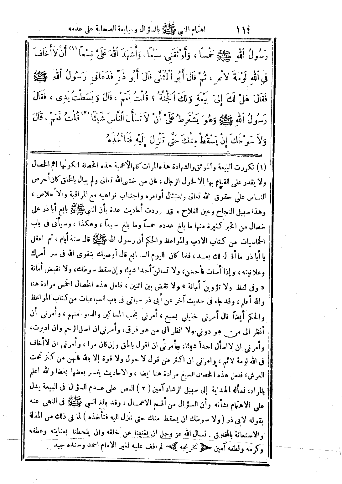 -[إهتمام النبي (صلى الله عليه وسلم) بالسؤال ومبايعة الصحابة على عدمه]-