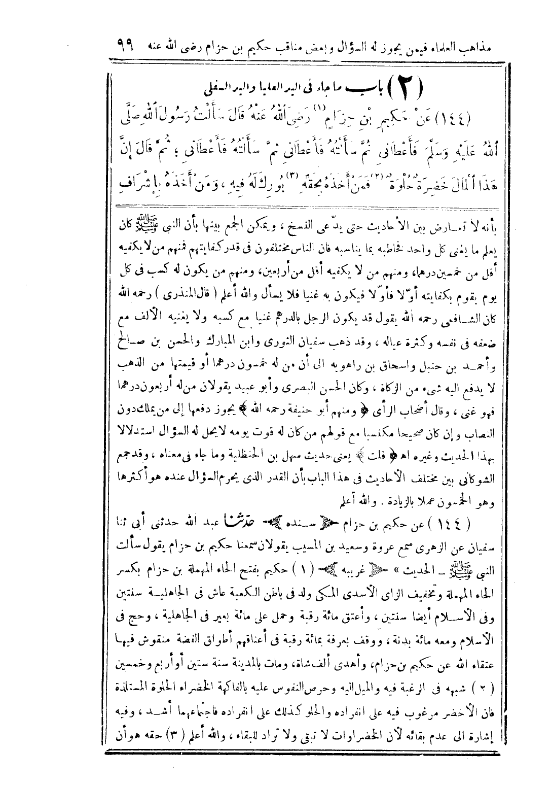-[مذاهب العلماء فيمن يجوز له السؤال وبعض مناقب حكيم بن حزام رضى الله عنه]-