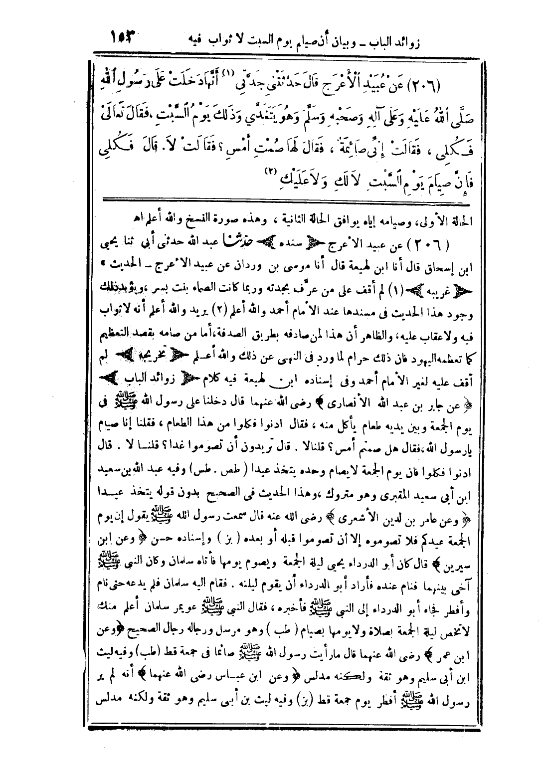 -[زوائد الباب- وبيان أن صيام يوم السبت لا ثواب فيه]-