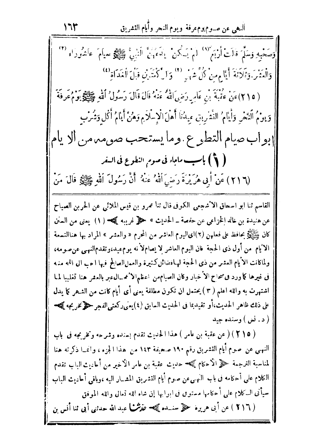 (عن عقبة بن عامر) هذا الحديث تقدم بسنده وشرحه وتخريجه في باب النهي عن صوم أيام التشريق رقم 190 صحيفة 143 من هذا الجزء، وإنما ذكرته هنا لمناسبة الترجمة (الأحكام) حديث عقبة بن عامر الأخير من أحاديث الباب تقدم الكلام على أحكامه في باب النهي عن صوم أيام التشريق المشار إليه، وباقي أحاديث الباب سيأتي الكلام على أحكامها مستوفي في أبوابها إن شاء الله تعالى والله الموفق
