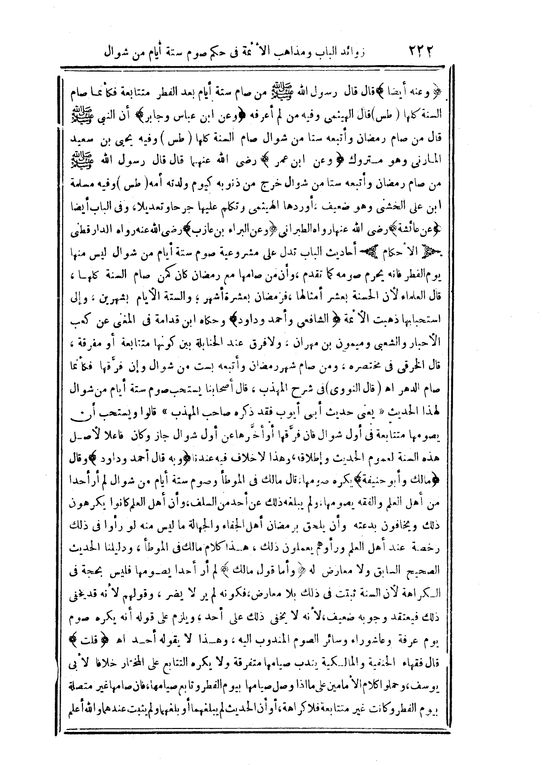 -[زوائد الباب ومذاهب الأئمة في حكم صوم ستة أيام من شوال]-