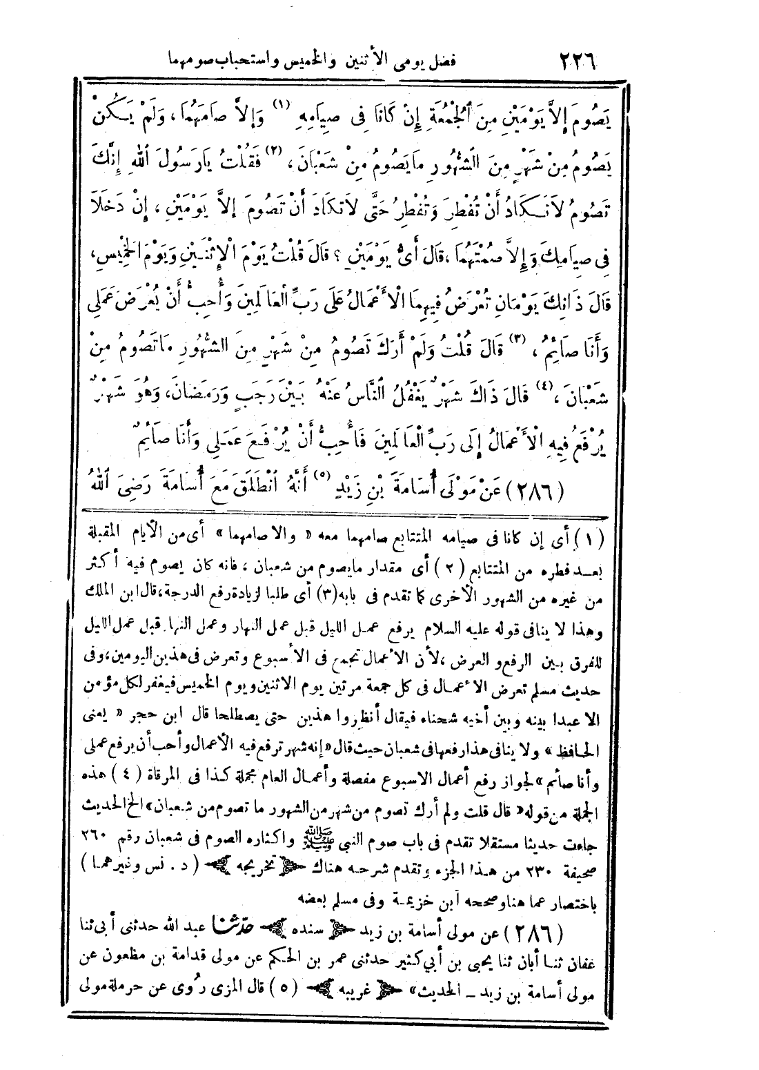 يصوم إلا يومين من الجمعة إن كانا في صيامه وإلا صامهما, ولم يكن يصوم من شهر من الشهور ما يصوم من شعبان, فقلت يا رسول الله إنك تصوم لا تكاد أن تفطر وتفطر حتى لا تكاد ان تصوم إلا يومين, إن دخلا في صيامك وإلا صمتهما, قال أي يومين؟ قال قلت يوم الاثنين ويم الخميس, قال انك يومان تعرض فيهما الأعمال على رب العالمين وأحب أن يعرض عملي وأنا صائم, قال قلت ولم أرك تصوم من شهر من الشهور ما تصوم من شعبان, قال ذاك شهر يغفل الناس عنه بين رجب ورمضان وهو شهر يرفع فيه الأعمال إلى رب العالمين فأحب يرفع عملي وأنا صائم