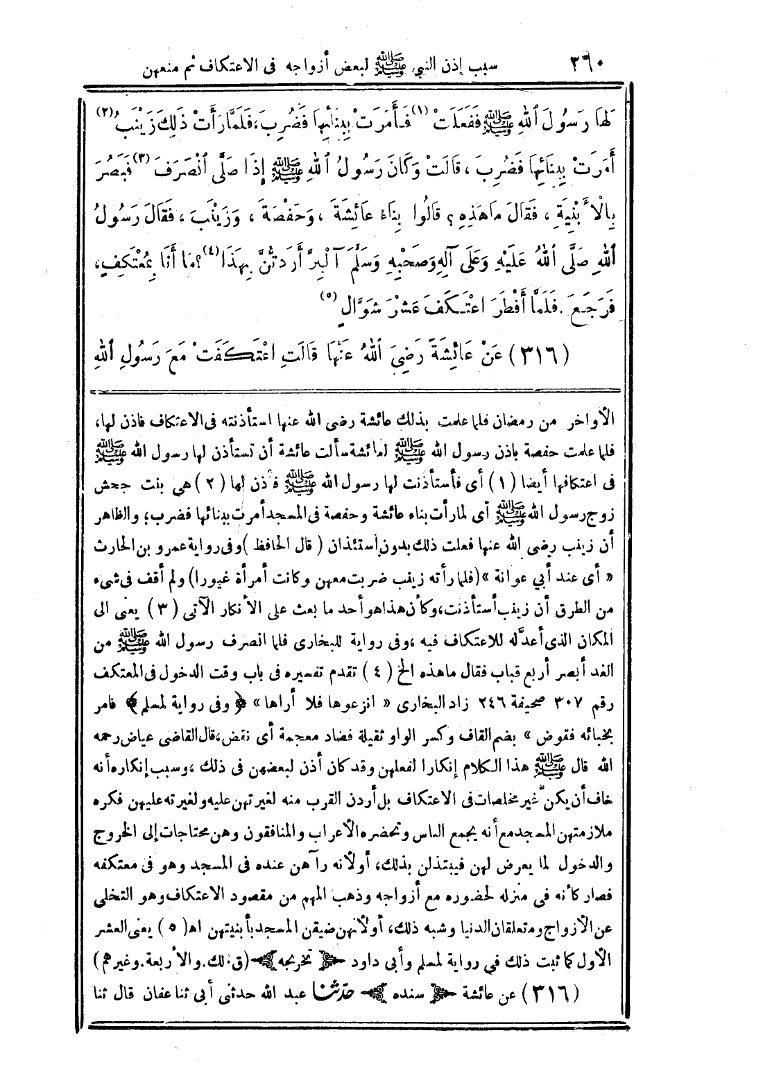 (316) عن عائشة رضي الله عنها قالت اعتكفت مع رسول الله