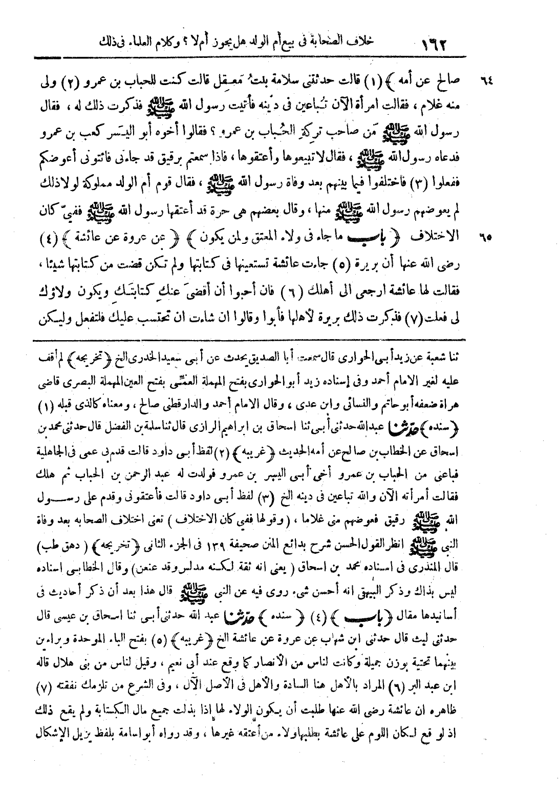 ثنا شعبة عن زيد أبي الحواري قال سمعت أبا الصديق يحدث عن أبي سعيد الخدري الخ (تخريجه) لم أقف عليه لغير الإمام أحمد وفي إسناده زيد أبو الحواري بفتح المهملة العمي بفتح العين المهملة البصري قاضى هراة ضعفه أبو حاتم والنسائي وابن عدي، وقال الإمام أحمد والدر قطني صالح، ومعناه كالذي قبله (سنده) حدثنا عبد الله حدثني أبي إسحاق بن إبراهيم الرازي قال ثنا سلمة بن الفضل قال حدثني محمد بن إسحاق عن الخطاب بن صالح عن أمه الحديث (غريبة) لفظ أبي داود قالت قدم بي عمي في الجاهلية فباعى من الحباب بن عمرو أخي أبي اليسر بن عمرو فولدت له عبد الرحمن بن الحباب ثم هلك فقالت امرأته الآن والله تباعين في دينه الخ لفظ أبي داود قالت فأعتقوني وقدم على رسول الله صلى الله عليه وسلم رقيق فعوضهم مني غلاما، (وقولها ففي كان الاختلاف) تعني اختلاف الصحابة بعد وفاة النبي صلى الله عليه وسلم انظر القول الحسن شرح بدائع المنن صحيفة 139 في الجزء الثاني (تخريجه) (د هق طب) قال المنذري في إسناده محمد بن إسحاق (يعني أنه ثقة لكنه مدلس وقد عنعن) وقال الخطابي إسناده ليس بذاك وذكر البيهقي أنه أحسن شيء روى فيه عن النبي صلى الله عليه وسلم قال هذا بعد أن ذكر أحاديث في أسانيدها مقال (باب) (سنده) حدثنا عبد الله حدثني أبي ثنا إسحاق بن عيسى قال حدثني ليث قال حدثني ابن شهاب عن عروة عن عائشة الخ (غريبة) بفتح الباء الموحدة وبراءين بينهما تحتية بوزن جميلة وكانت لناس من الأنصار كما وقع عند أبي نعيم، وقيل لناس من بني هلال قاله ابن عبد البر المراد بالأهل هنا السادة والأهل في الأصل الآل، وفي الشرع من تلزمك نفقته ظاهر أن عائشة رضي الله عنها طلبت أن يكون الولاء لها إذا بذلت جميع مال الكتابة ولم يقع ذلك إذ لو قع لكان اللوم على عائشة بطلبها ولاء من أعتقه غيرها، وقد رواه أبو أسامة بلفظ يزيل الإشكال
