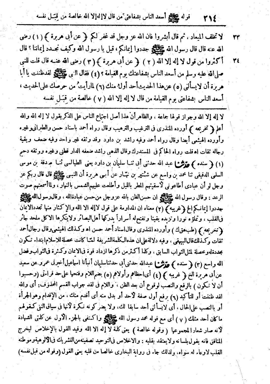 قوله صلى الله عليه وسلم أسعد الناس بشفاعتي من قال لا اله إلا الله خالصة من قبل نفسه