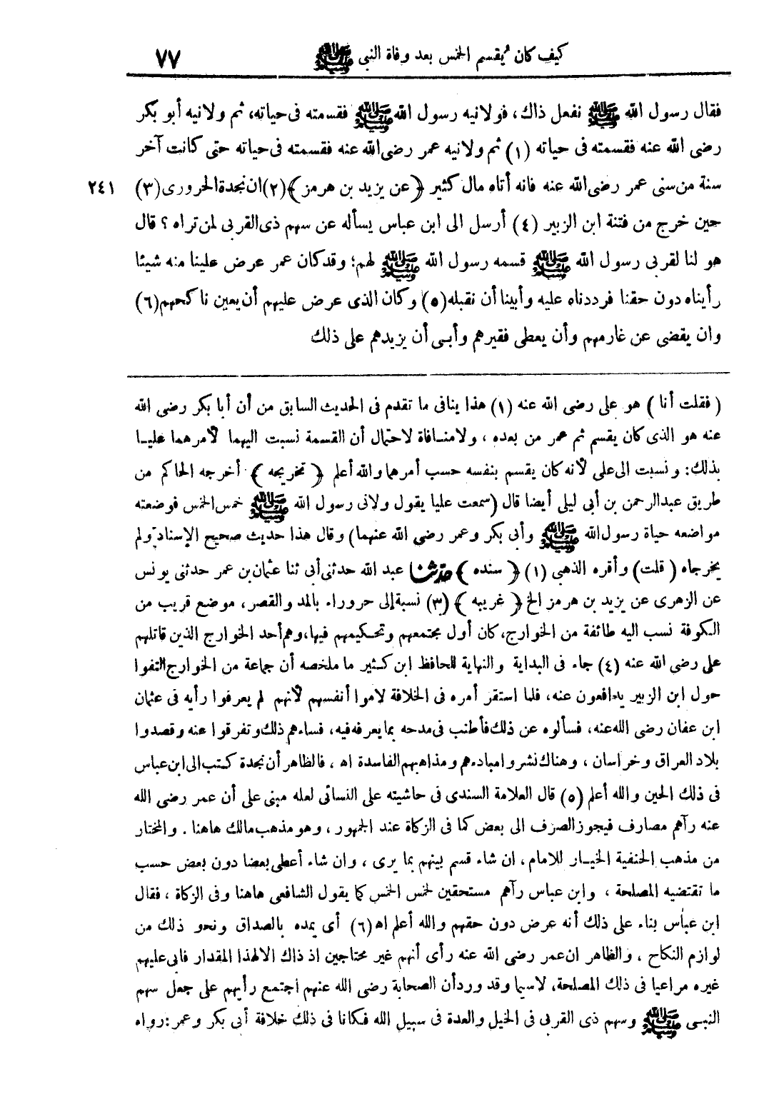 فقال رسول الله صلى الله عليه وسلم نفعل ذلك، فولانية عمر رضي الله عنه فقسمته في حياته حتى كانت آخر سنة من سنى عمر رضي الله عنه فإنه أتاه مال كثير (عن يزيد بن هرمز) إن نجدة الحروري حين خرج من فتنة ابن الزبير أرسل إلى ابن عباس يسأله عن سهم ذي القربى لمن تراه؟ قال هو لنا لقربى رسول الله صلى الله عليه وسلم قسمه رسول الله صلى الله عليه وسلم لهم، وقد كان عمر عرض علينا منه شيئا رأيناه دون حقنا فرددناه عليه وأبينا أنم نقبله وكان الذي عرض عليهم أن يعين ناكحهم وأن يقضي عن غارمهم وأن يعطى فقيرهم وأبى أن يزيدهم على ذلك