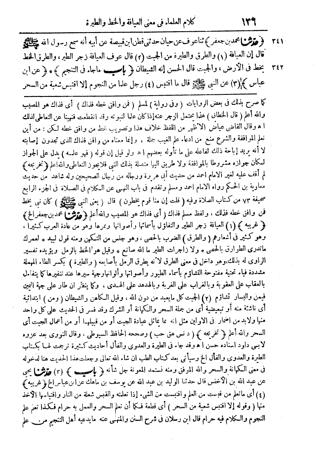 -[كلام العلماء فى معنى العيافة والخط والطيرة]-