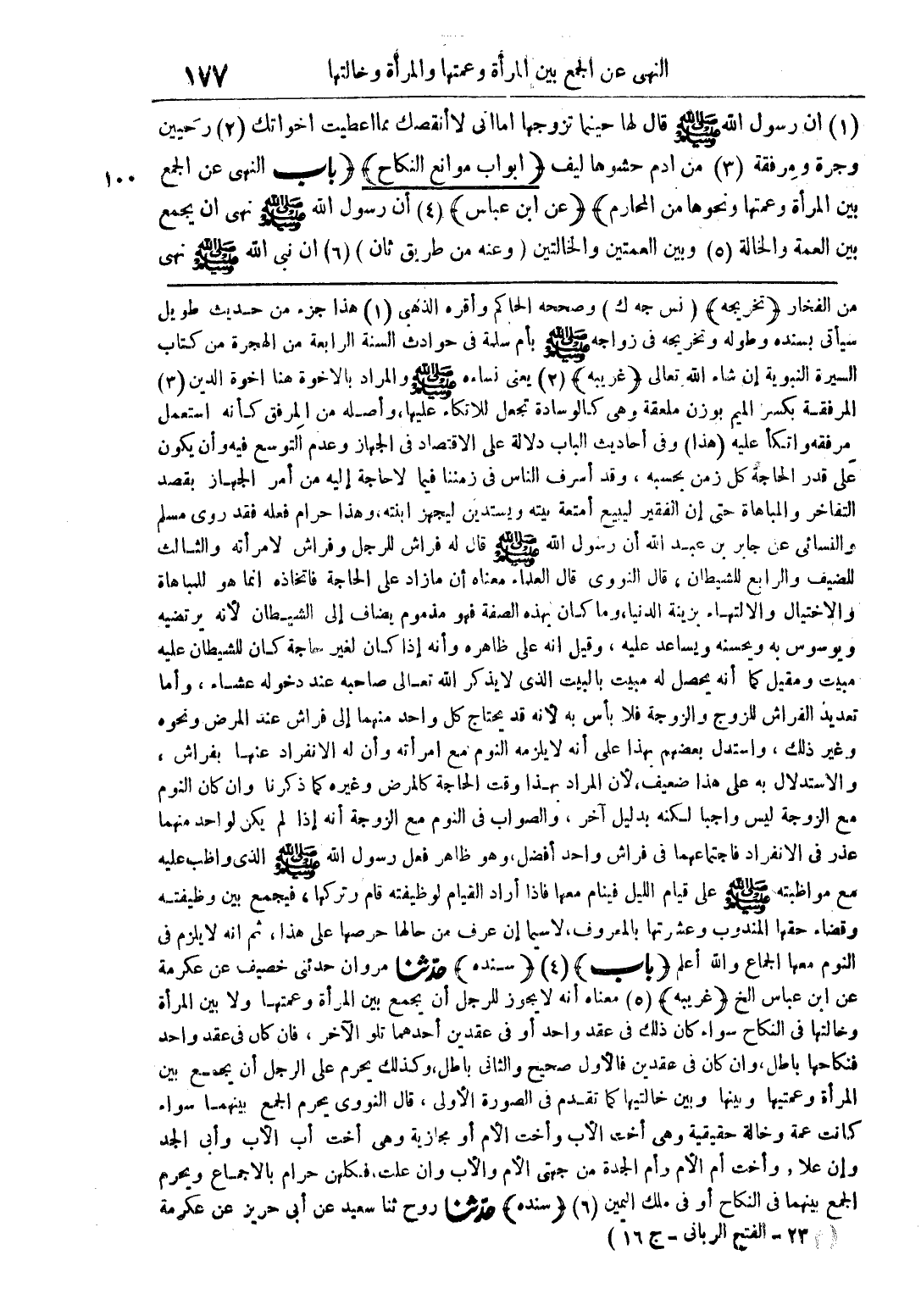 (1) أن رسول الله صلى الله عليه وسلم قال لها حينما تزوجها أما أتى لا أنقصك مما أعطيت أخواتك (2) رحيين وجرة ومرفقة (3) من أدم حشوها ليف (أبواب موانع النكاح) (باب النهي عن الجمع بين المرأة وعمتها ونحوها من المحارم) (عن ابن عباس) (4) أن رسول الله صلى الله عليه وسلم نهى أن يجمع بين العمة والخالة (5) وبين العمتين والخالتين (وعنه من طريق ثان) (6) أن نبي الله صلى الله عليه وسلم نهى