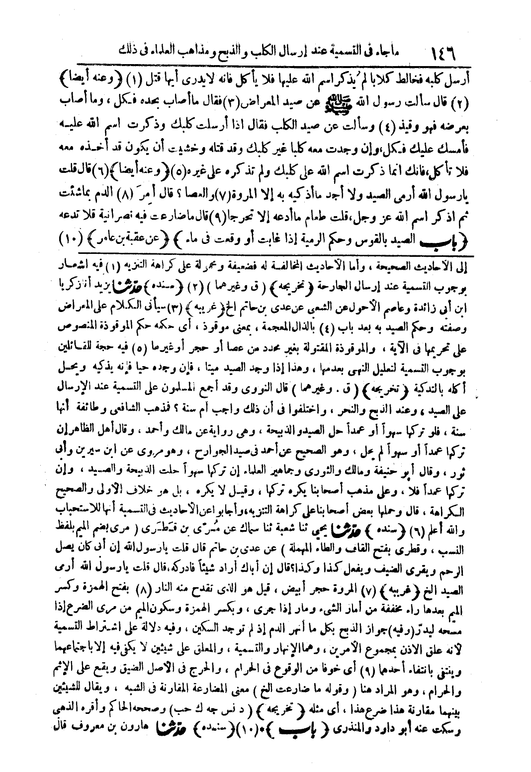 -[ما جاء في التسمية عد إرسال الكلب والذبح ومذاهب العلماء في ذلك]-