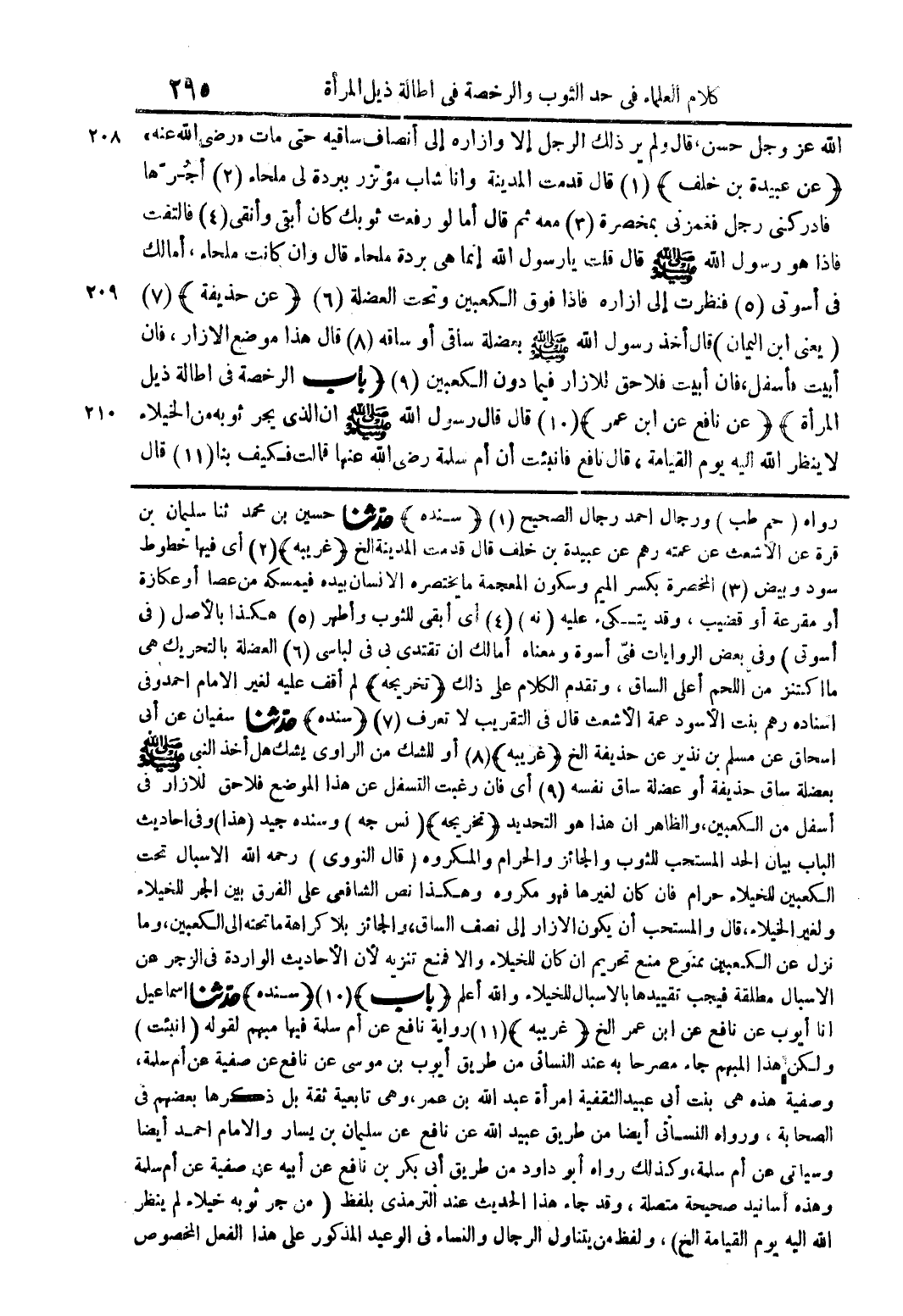 -[كلام العلماء فى حد الثوب والرخصة فى اطالة ذيل المرأة]-