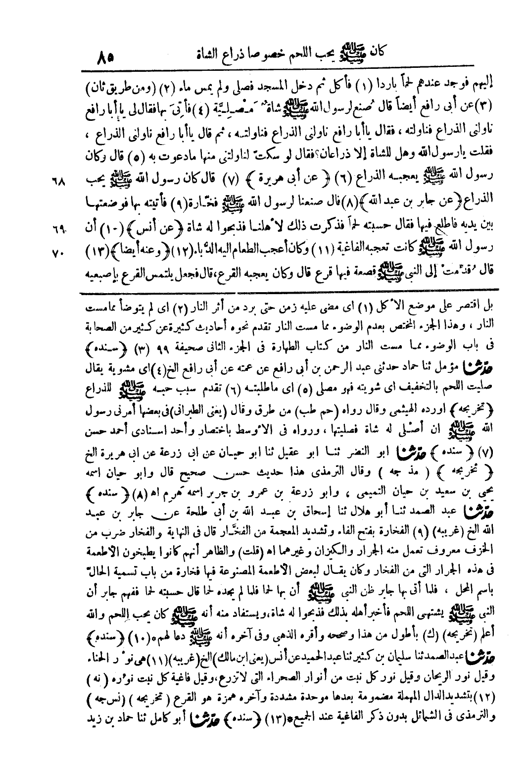 -[كان صلى الله عليه وسلم يحب اللحم خصوصا ذراع الشاة]-