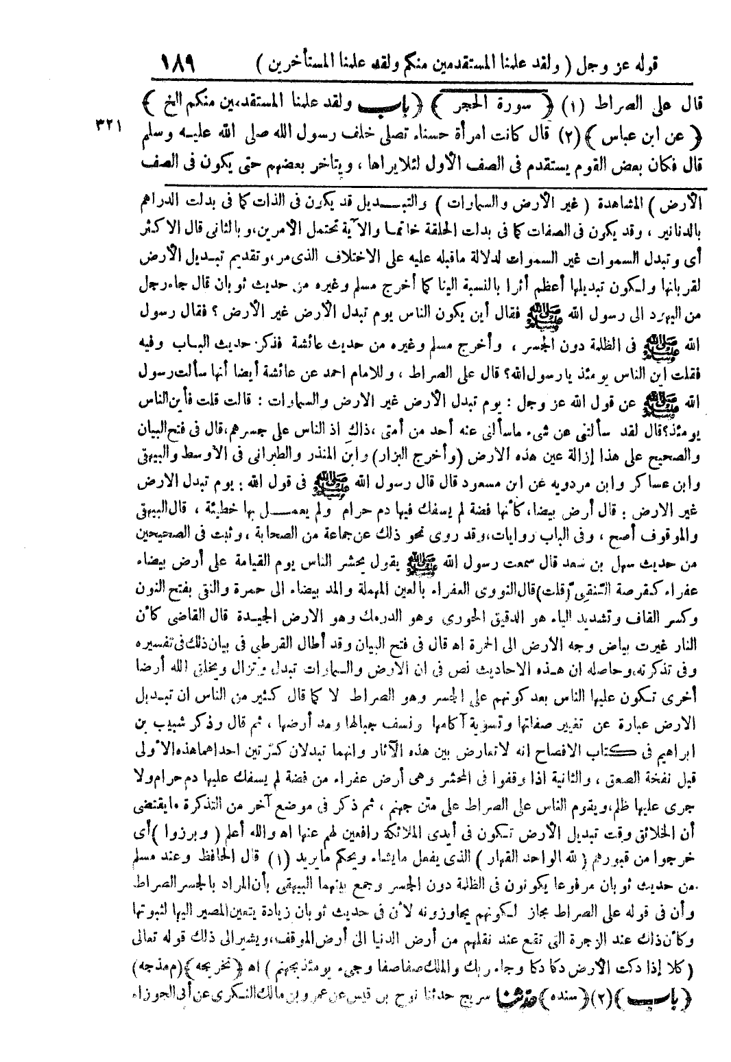 قال على الصراط (1) (سورة الحجر) (باب ولقد علمنا المستقدمين منكم الخ) (عن ابن عباس) (2) قال كانت امرأة حسناء تصلي خلف رسول الله صلى الله عليه وسلم قال فكان بعض القوم يستقدم في الصف الأول لئلا يراها، ويتأخر بعضهم حتى يكون في الصف