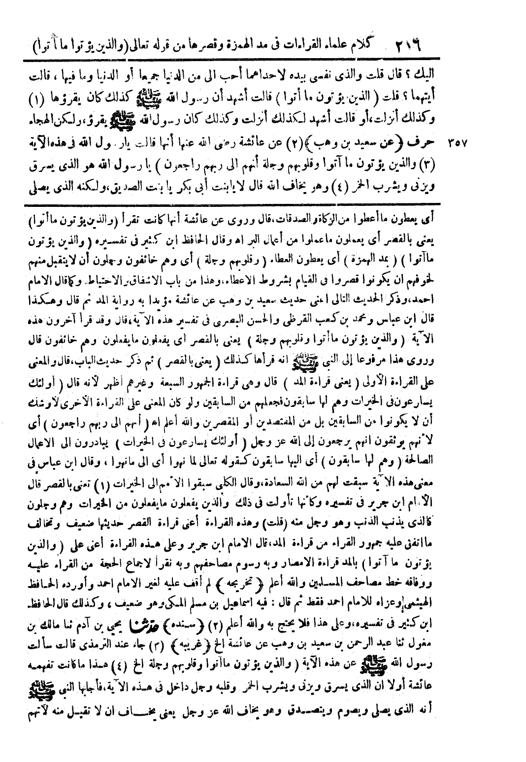 -[كلام علماء القراءات في مد الهمزة وقصرها من قوله تعالى (والذين يؤتوا ما أتوا)]-