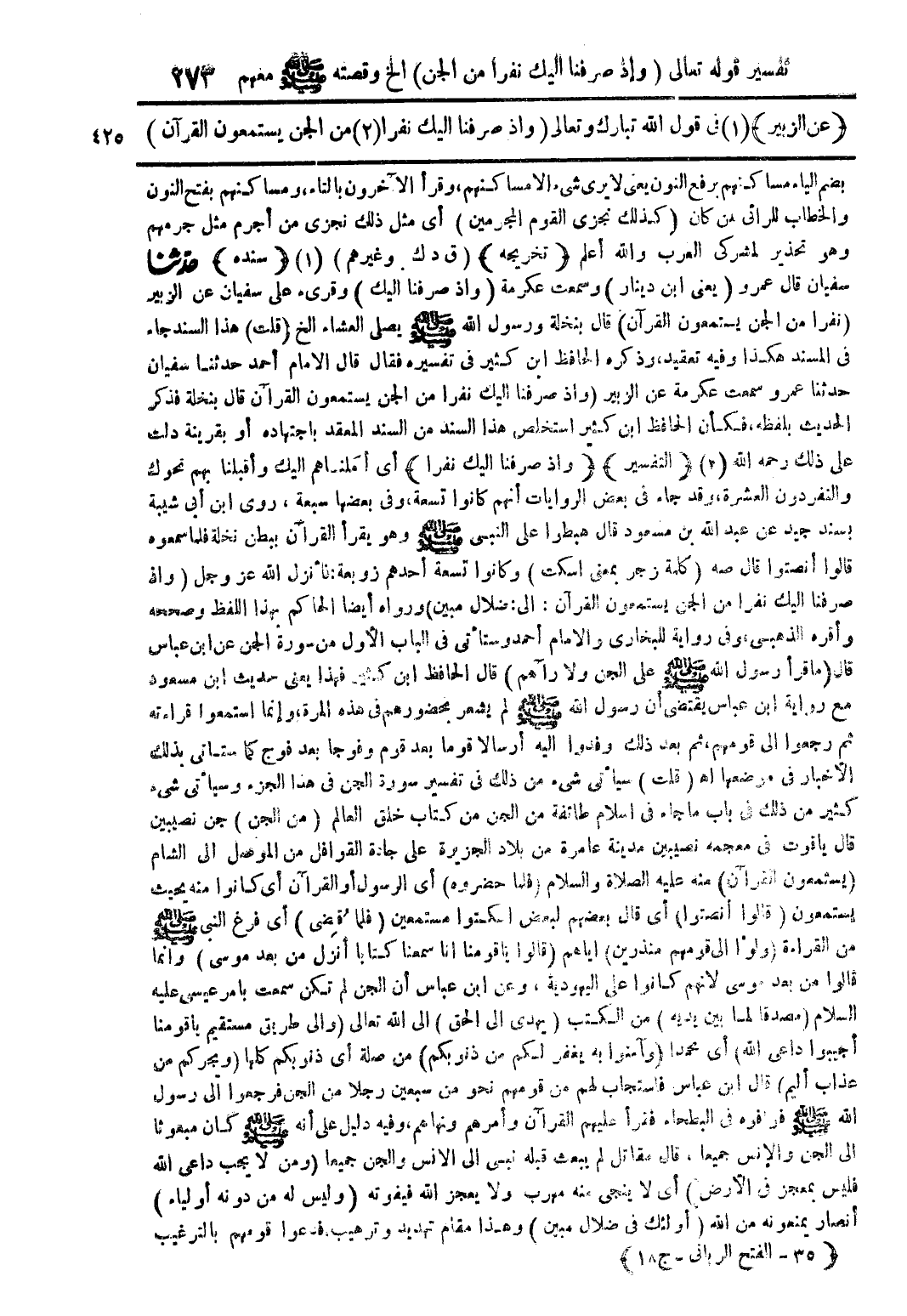 (عن الزبير) (1) فى قول الله تبارك وتعالى {واذ صرفنا اليك نفرًا (2) من الجن يستمعون القرآن}