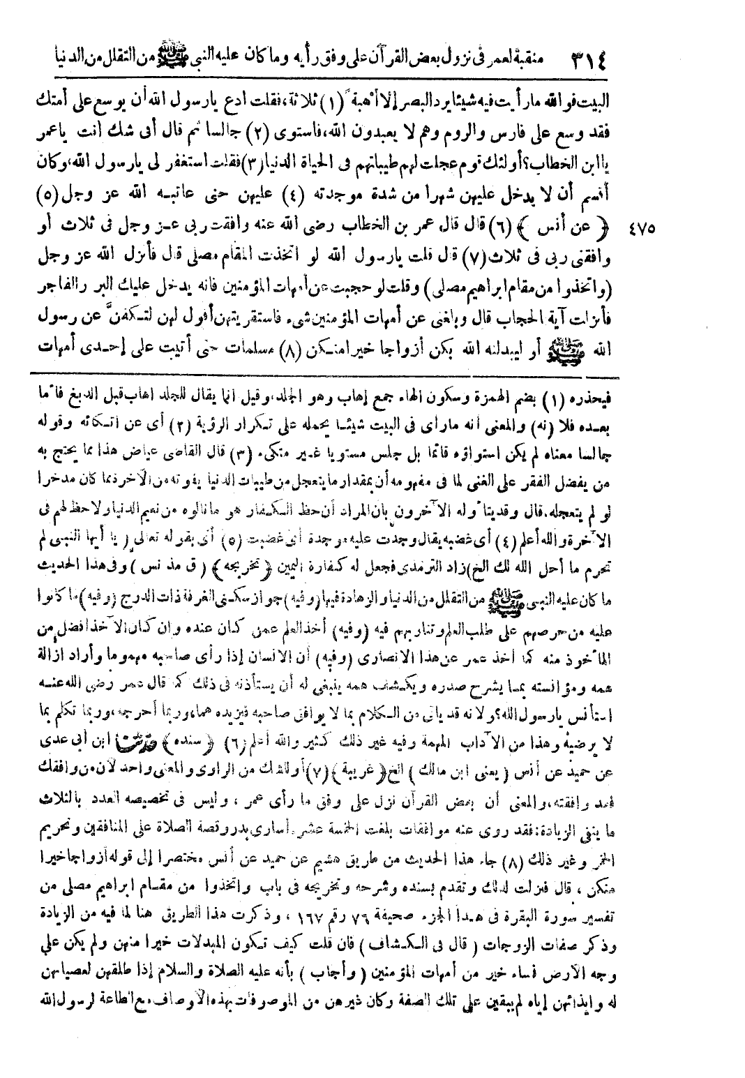 -[منقبة لعمر في نزول بعض القرآن على وفق رأيه وما كان عليه النبي صلى الله عليه وسلم من التقلل من الدنيا]-