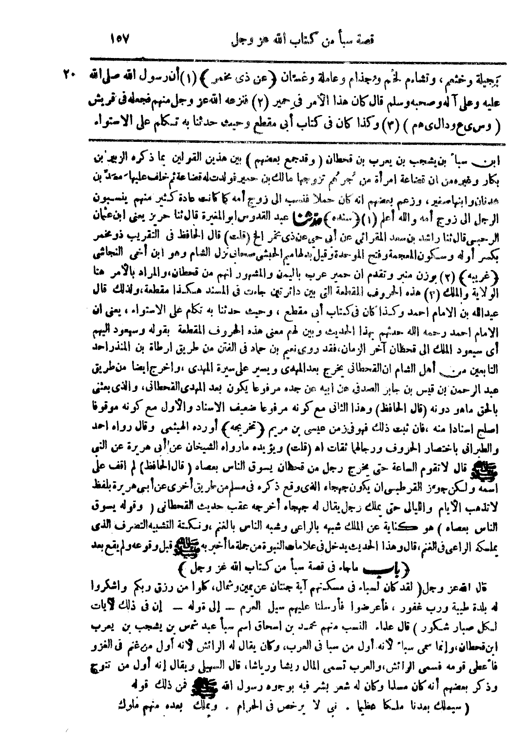 برجيلة وخثعم، وتشاءم لخم وجذام وعاملة وغسان (عن ذي مخمر) (1) أن رسول الله صلى الله عليه وسلم وعلى آله وصحبه أجمعين وصحبه وسلم قال كان هذا الأمر في حمير (2) فنزعه الله عز وجل منهم فجعله في قريش (وس ي ع ود ال ي هـ م) (3) وكذا كان في كتاب أبي مقطع وحيث حدثنا به تكلم على الاستواء