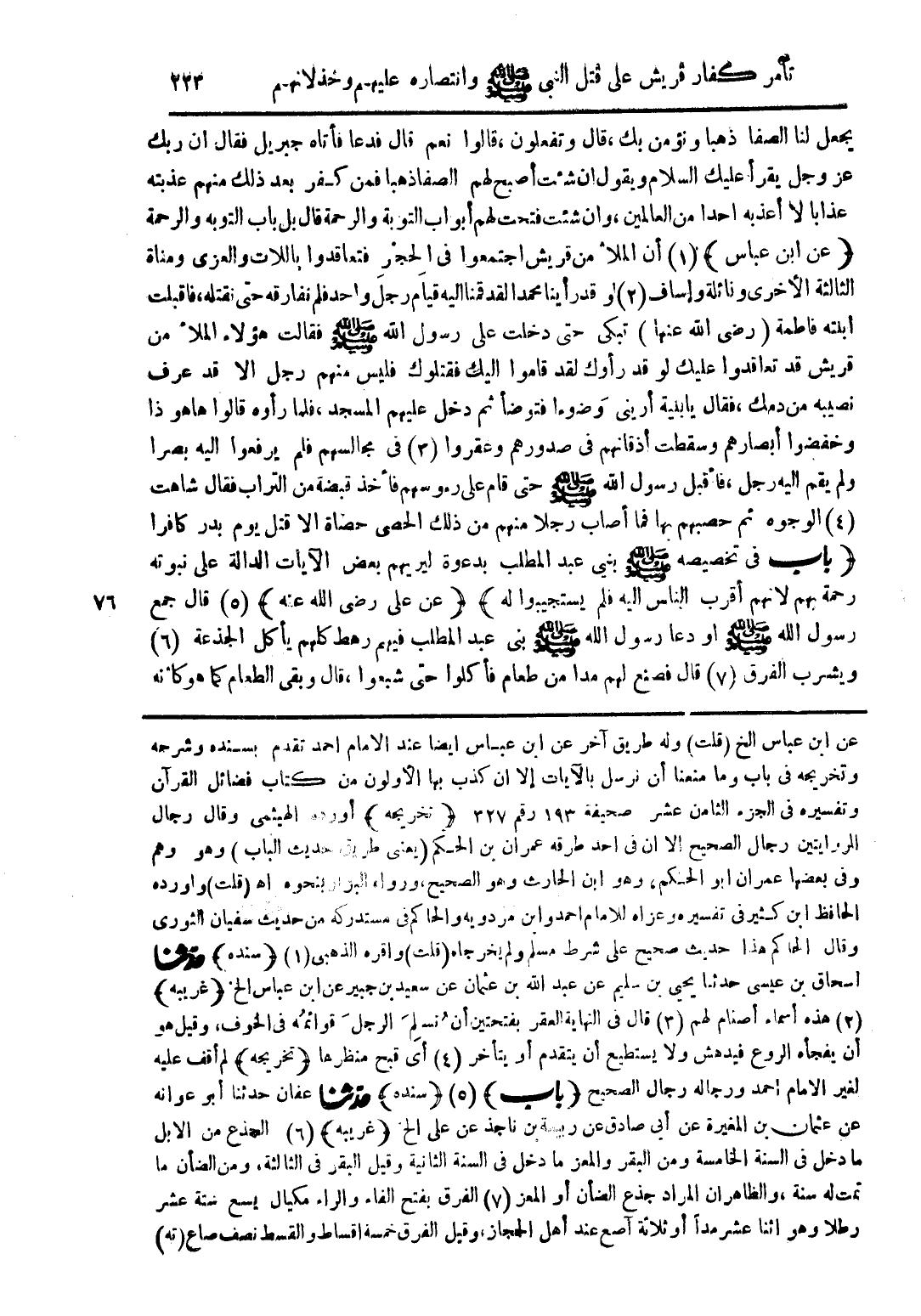عن ابن عباس الخ (قلت) وله طريق آخر عن ابن عباس ايضا عند الامام احمد تقدم بسنده وشرحه وتخريجه فى باب وما منعنا أن نرسل بالآيات إلا ان كذب بها الأولون من كتاب فضائل القرآن وتفسيره فى الجزء الثامن عشر صحيفة 193 رقم 327 (تخريجه) أورده الهيثمى وقال رجال الروايتين رجال الصحيح الا ان فى احد طرقه عمران بن الحكم (يعنى طريق حديث الباب) وهو وهم وفى بعضها عمران ابو الحكم، وهو ابن الحارث وهو الصحيح، ورواه البزار بنحوه اهـ (قلت) واورده الحافظ ابن كثير فى تفسيره وعزاه للامام احمد وابن مردويه والحاكم فى مستدركه من حديث سفيان الثورى وقال الحاكم هذا حديث صحيح على شرط مسلم ولم يخرجاه (قلت) واقره الذهبى (1) (سنده) حدّثنا اسحاق بن عيسى حدثنا يحيى بن سليم عن عبد الله بن عثمان عن سعيد بن جبير عن ابن عباس الخ (غريبه) (2) هذه أسماء أصنام لهم (3) قال فى النهاية العقر بفتحتين أن تسلم الرجل قوائمه فى الخوف، وقيل هو أن يفجأه الروع فيدهش ولا يستطيع أن يتقدم أو يتأخر (4) أى قبح منظرها (تخريجه) لم أقف عليه لغير الامام احمد ورجاله رجال الصحيح (باب) (5) (سنده) حدّثنا عفان حدثنا أبو عوانه عن عثمان بن المغيرة عن أبى صادق عن ربيعة بن ناجذ عن على الخ (غريبه) (6) الجذع من الابل ما دخل فى السنة الخامسة ومن البقر والمعز ما دخل فى السنة الثانية وقيل البقر فى الثالثة، ومن الضأن ما تمت له سنة، والظاهر ان المراد جذع الضأن أو المعز (7) الفرق بفتح الفاء والراء مكيال يسع ستة عشر رطلا وهو اثنا عشر مدًا أو ثلاثة آصع عند أهل الحجاز، وقيل الفرق خمسة اقساط والقسط نصف صاع (ته)
